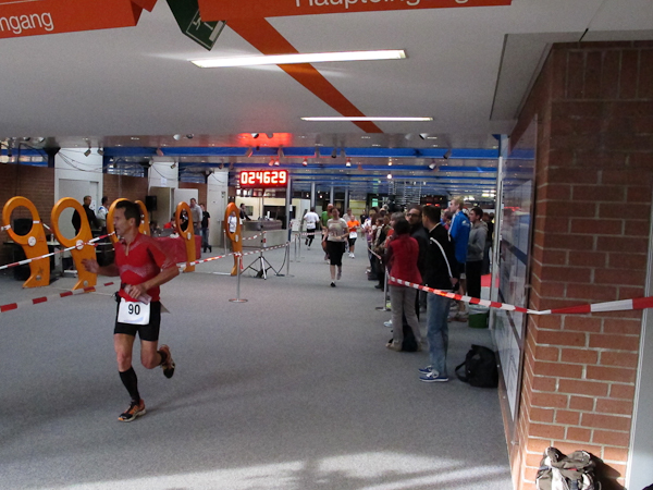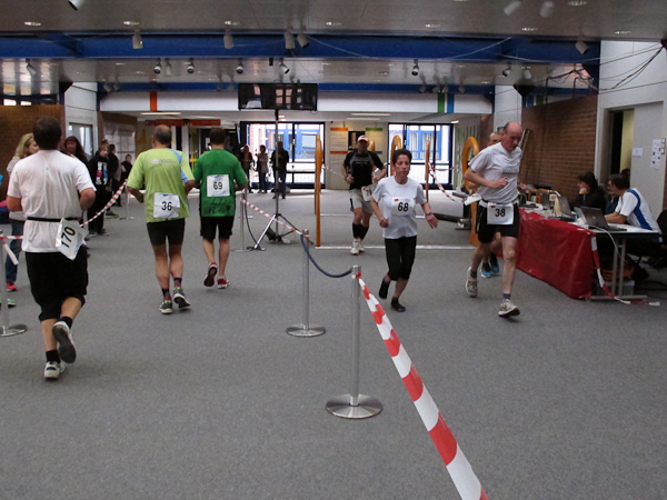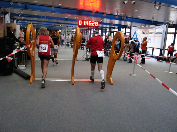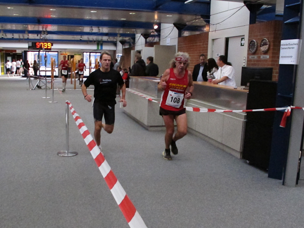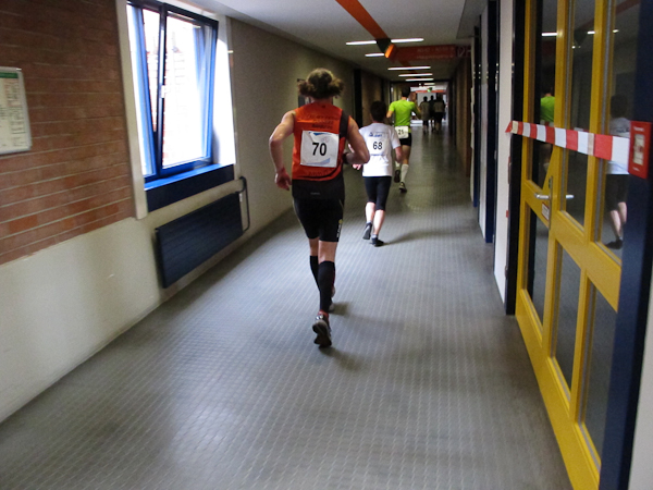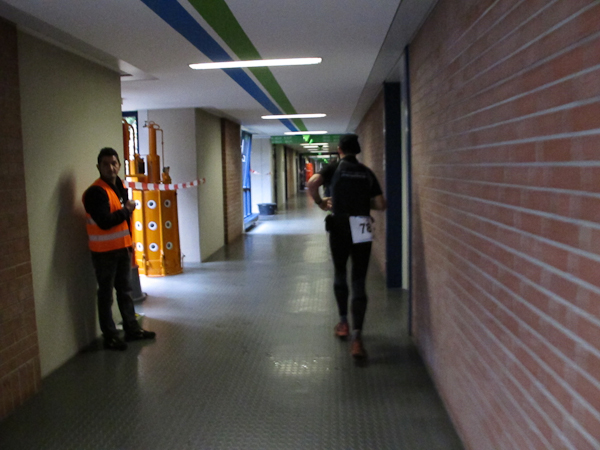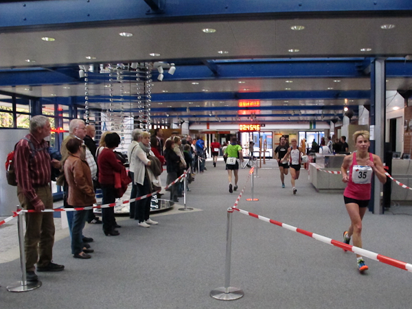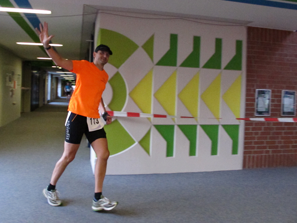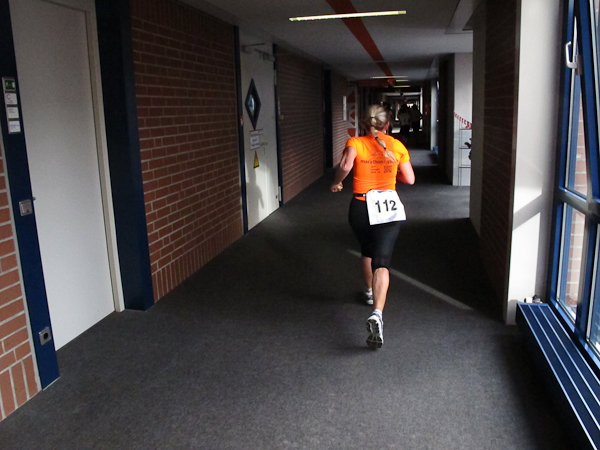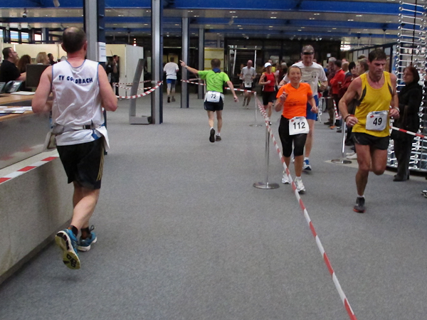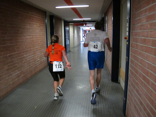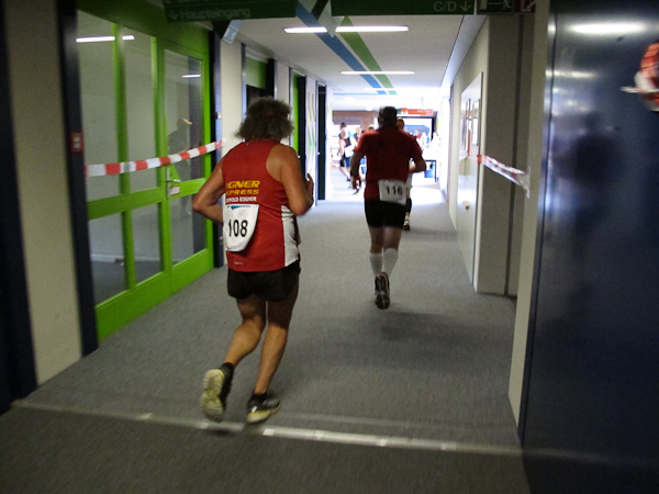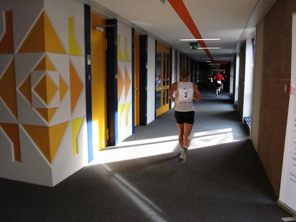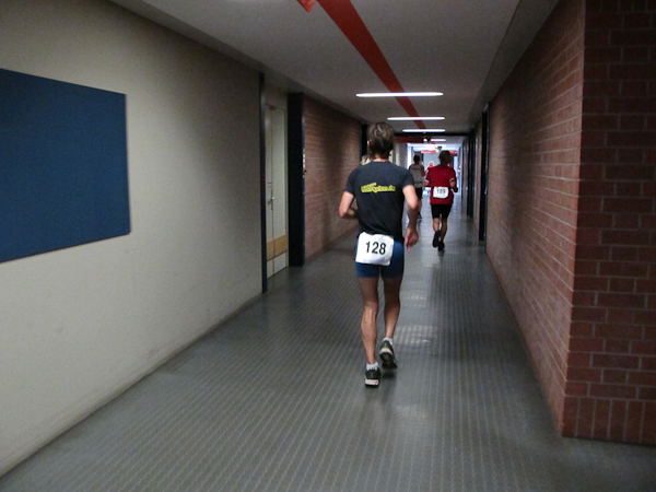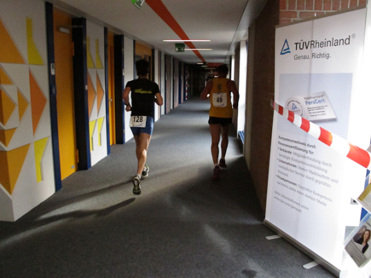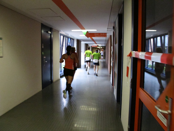 Streckenprofil: Marathon 42,195 km (vermessen!) 55 Runden, 455 Höhenmeter (Treppenanteil) auf zwei Ebenen (Ebene 0 und Ebene 1)