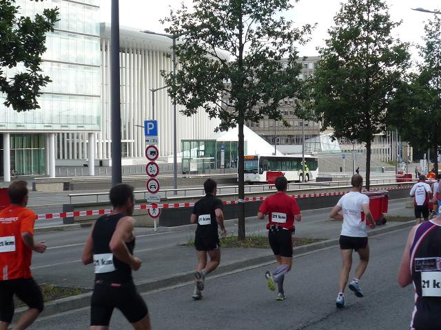 Das ändert sich erst nach gut 5 km, als der Lauftross, vorbei am Campus Kirchberg, auf die Avenue John F. Kennedy stößt.