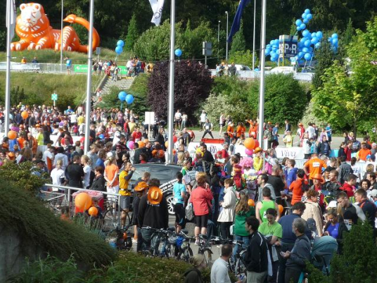 Pünktlich um 19 Uhr ist es soweit: Die letzten Sekunden werden aus Tausenden von Kehlen herunter gezählt, der Startschuss fällt, Hunderte orangefarbener Luftballons steigen gen Himmel. Und los geht es.