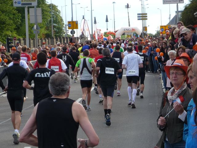 Die beiden Kilometer auf der Avenue John F. Kennedy sind sehr locker zu laufen, kein Wunder: Es geht permanent leicht abwärts. Ich bemühe mich, dabei den Umstand auszublenden, dieses Wegstück am Ende des Marathons nochmals belaufen zu müssen, nur dann bergan in umgekehrter Richtung.