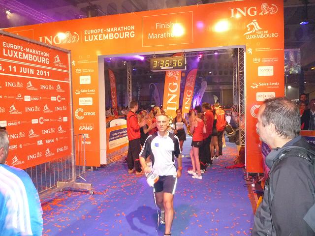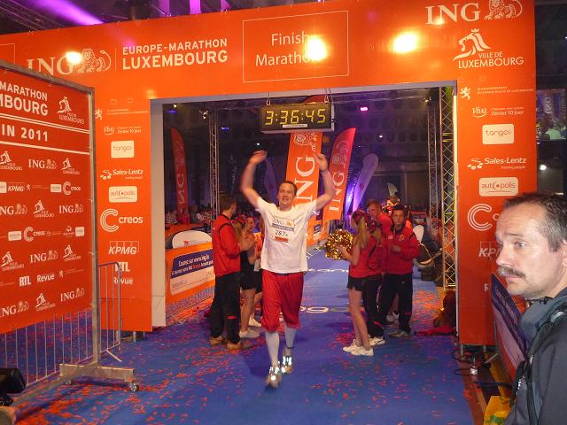 Ich ziehe weiter, wieder allein im Kampf mit den letzten Kilometern. Nein, wirklich Spaß macht das Laufen nicht mehr, da hilft auch kein Sambagetrommel in finsteren Nacht.. Von der Avenue John F. Kennedy zweigen wir ab auf den Boulevard Pierre Frieden, jene Straße, auf der unserer Marathon begann und wo die Einsamkeit noch ein wenig größer wird.