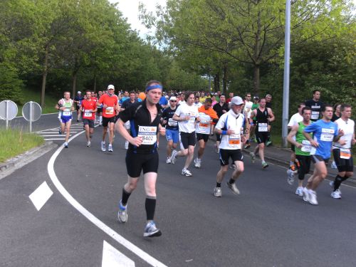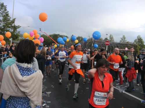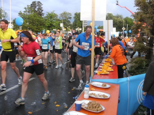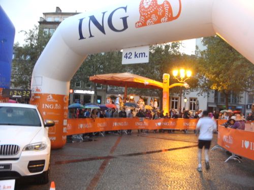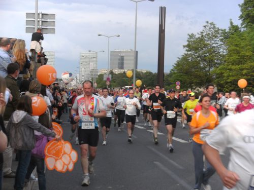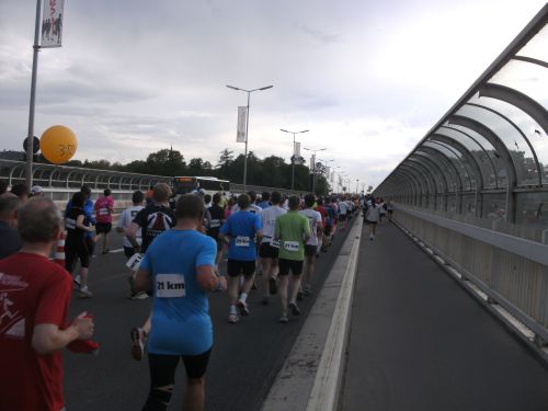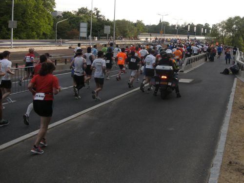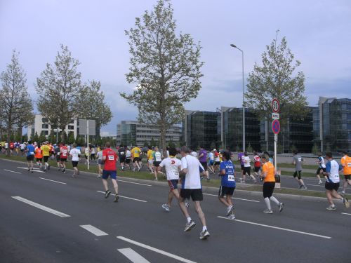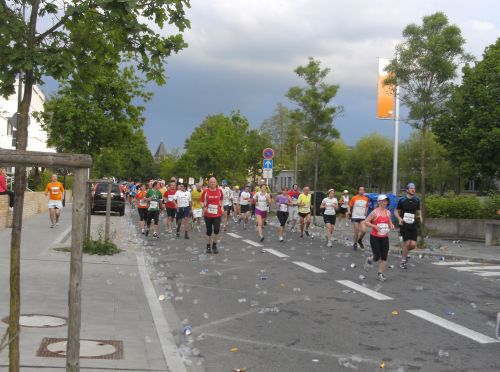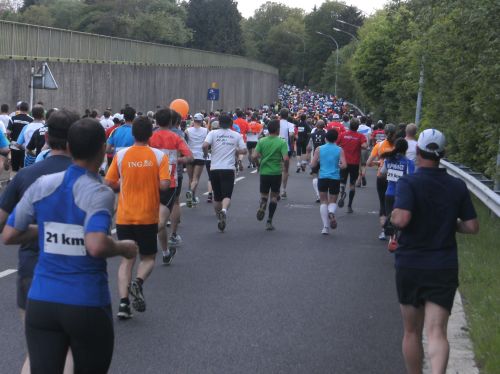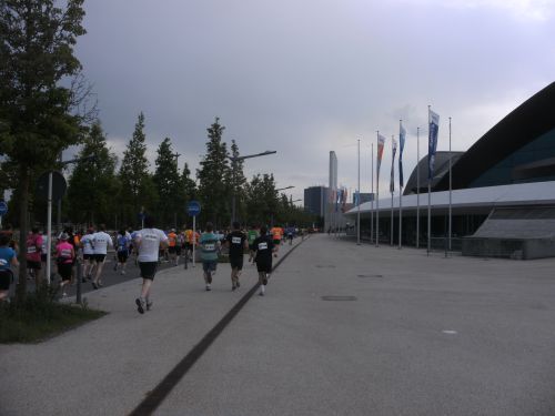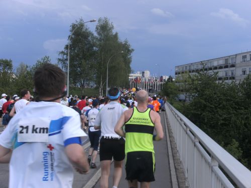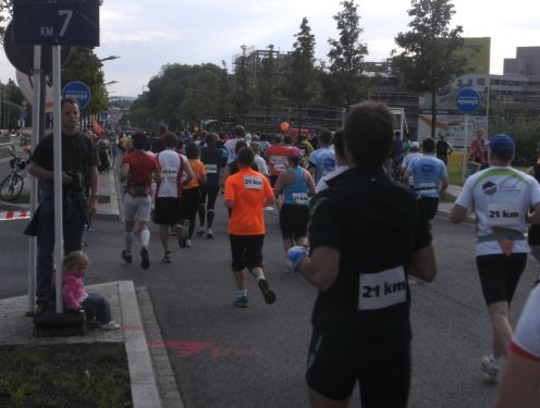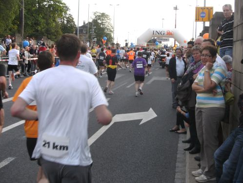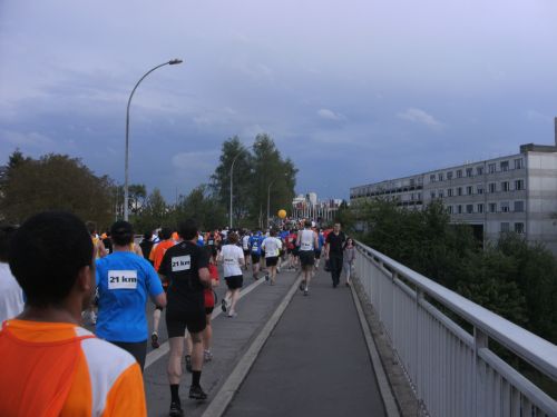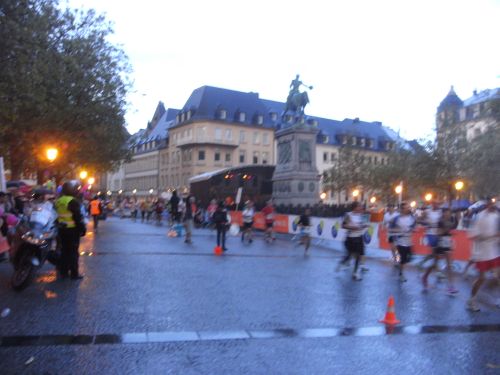 Nun fängt der Lauf an, seinem Namen als Night Run alle Ehre zu machen. Es wird Nacht. Und die Bayern spielen ihr Heimfinale der Champions League gegen den FC Chelsea. Erst höre ich zum Spielstand Null:Null, Zero:Zero, später sagt man mir Eins:Eins, Une:Une, Een:Een. Später heißt es Verlängerung. Während das Münchner Drama seinen Lauf nimmt, setzen wir den unsrigen fort.