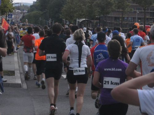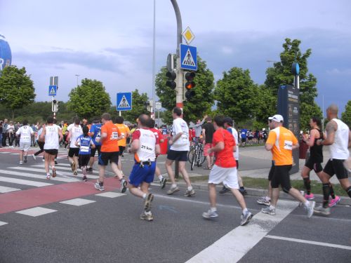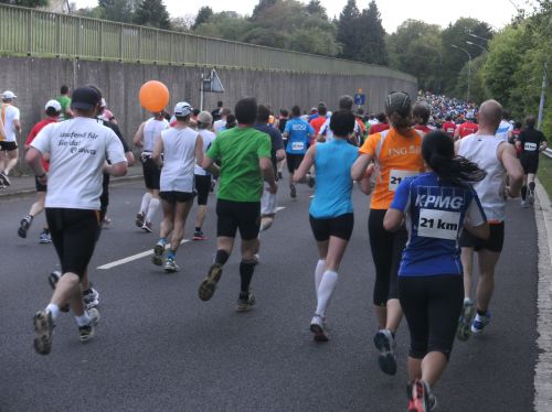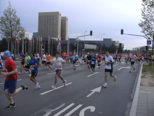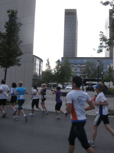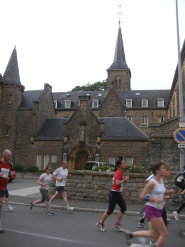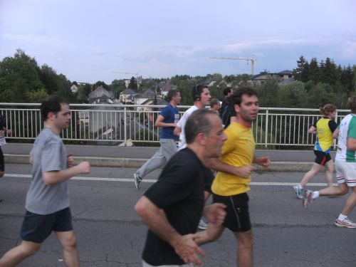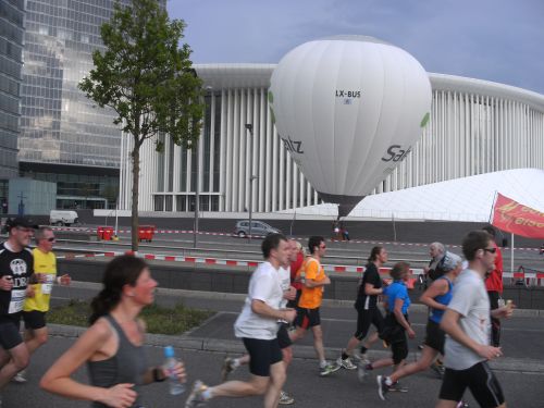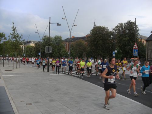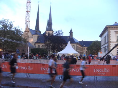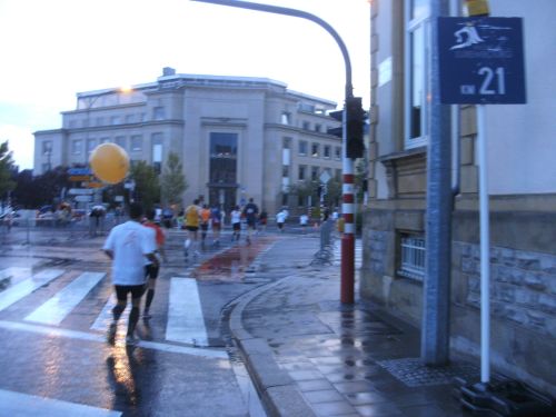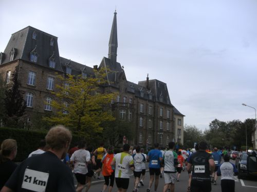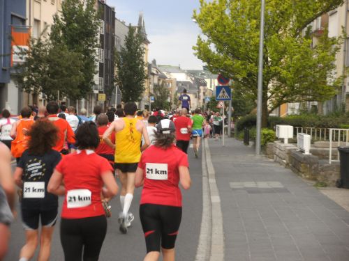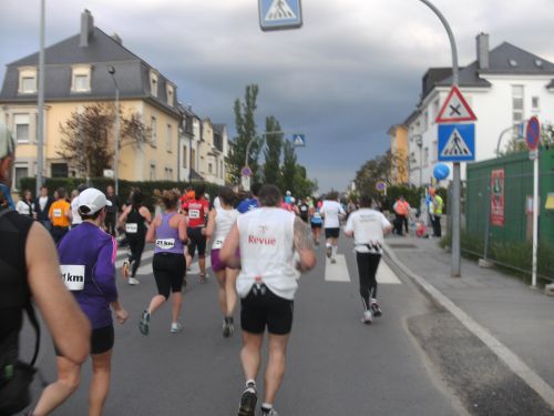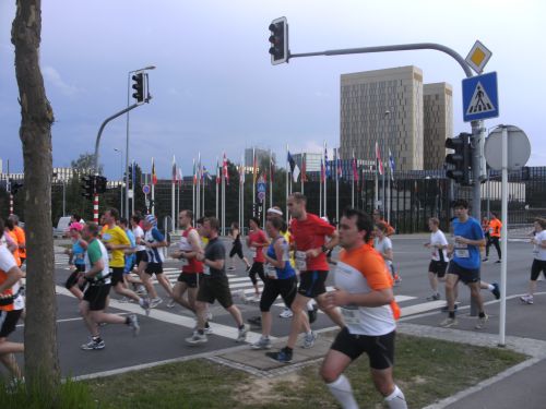Zunächst laufen wir auf dem breiten vierspurigen Boulevards Pierre Frieden und Konrad Adenauer. Man spürt die Internationalität des Laufes. 81 Nationen sind vertreten. Man hört verschiedene Sprachen. Quasi Marathon als Sprachfortbildung.
