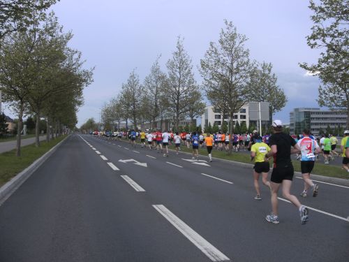Kurz vor Km 15 bereiten mir die Streckenplaner eine unerwartete Freude. Ich hatte mir den Streckenplan vor dem Lauf nicht genau angesehen und bin überrascht, dass schon hier die Halben nach links und die 42er nach rechts abbiegen. Jetzt ist richtig Platz auf der Strecke.