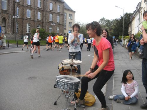 Neben den Tänzerinnen bieten einige Musikgruppen akustische Genüsse. Ich hab nicht viel Marathons mit einer solchen Anzahl von Bands an der Strecke erlebt wie hier in Luxemburg. Klasse! Habt Dank für eine stimmungsvolle Unterstützung.