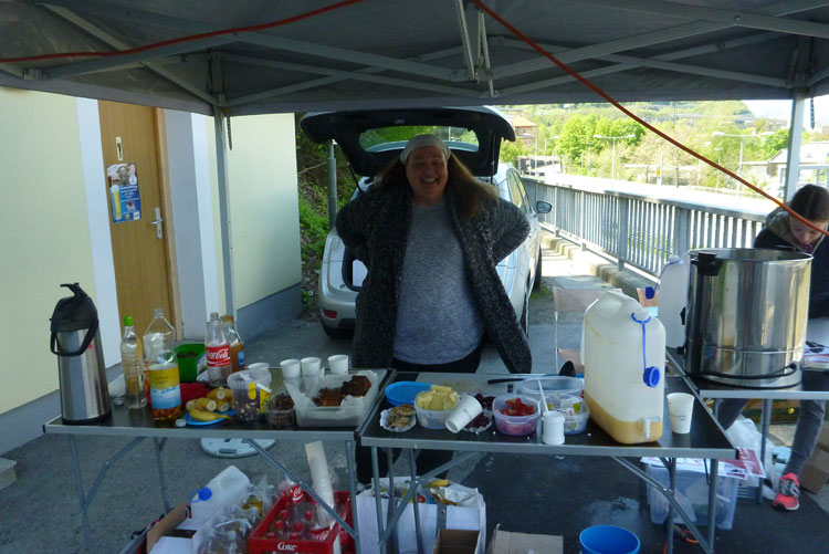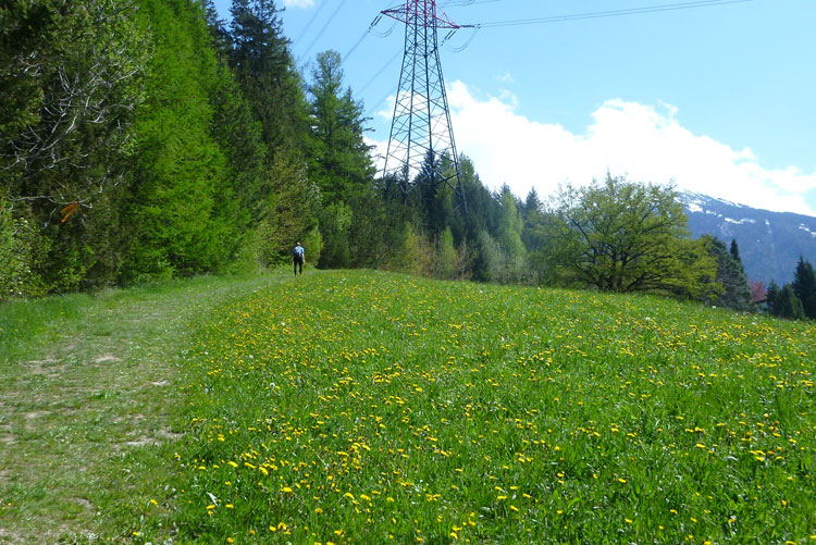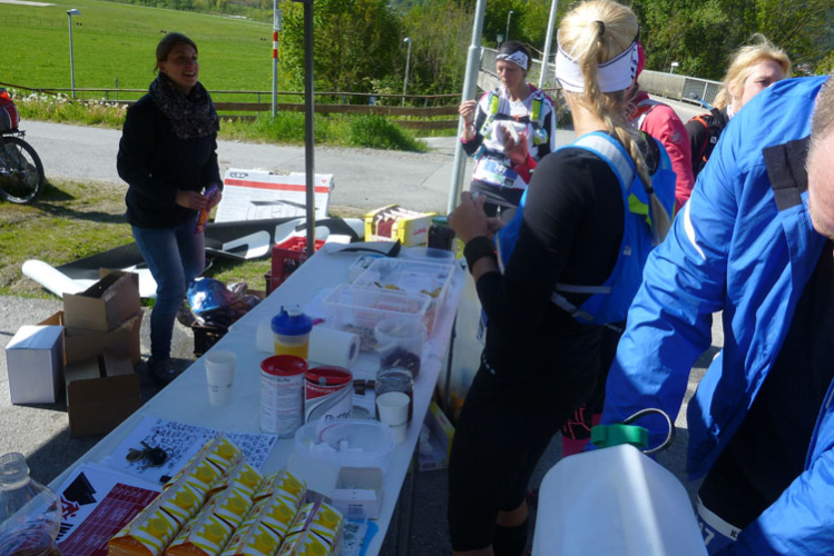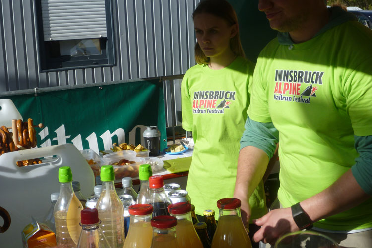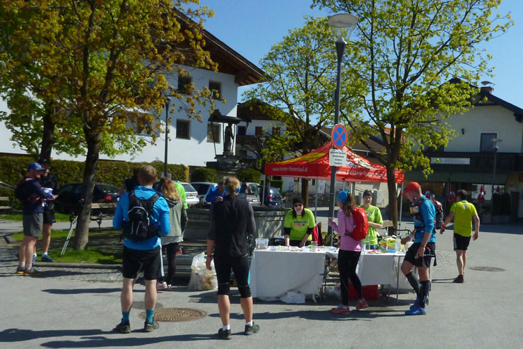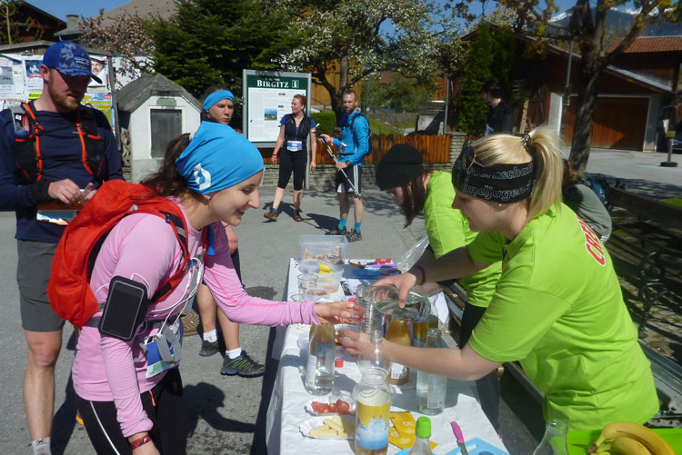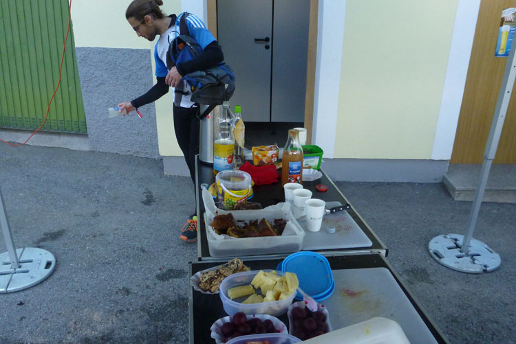 Dann wird’s unübersichtlich. Wir sind nicht weit vom Autobahn-Knoten Innsbruck-Mitte, wo sich die Inntal- und die Brennerautobahn teilen. Mal geht es über die Brennerautobahn, anschließend über, entlang und erneut über die Inntalautobahn, bevor wir nochmals die „Strada del Sole“ Richtung Bozen überqueren. Zwischendrin liegt unsere 5. Versorgungsstelle (km 32). Das Angebot ist wieder reichlich Unter anderem stehen auch ein großer Topf mit Kartoffelsuppe und eine schöne Kuchenauswahl bereit. Hier gibt es auch einen Cut-Off zu beachten: Großzügige 6 Stunden, ich habe genügend Luft, muss mir deswegen keinen Stress machen.