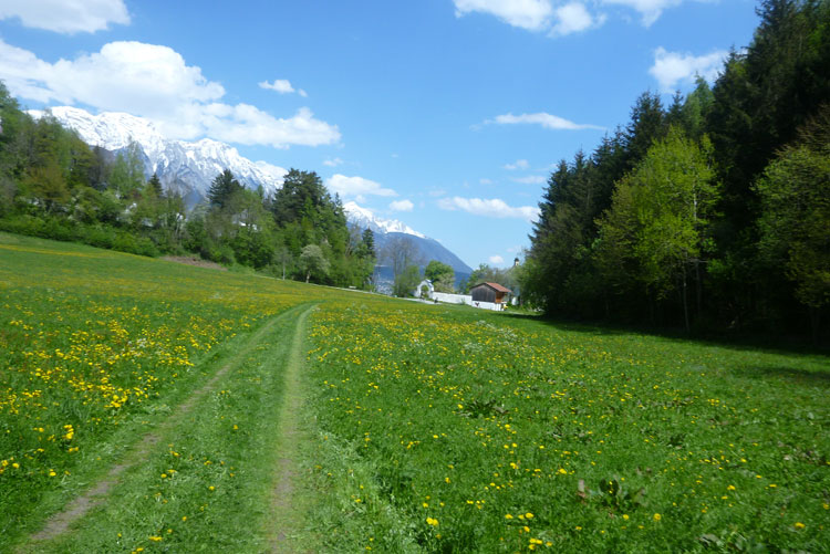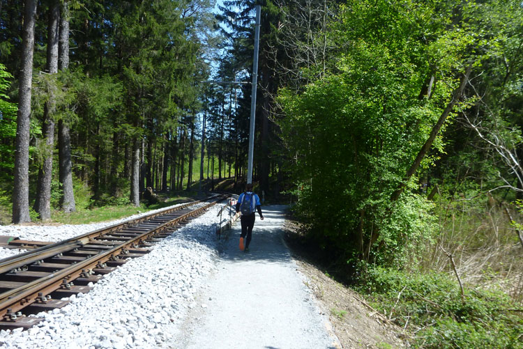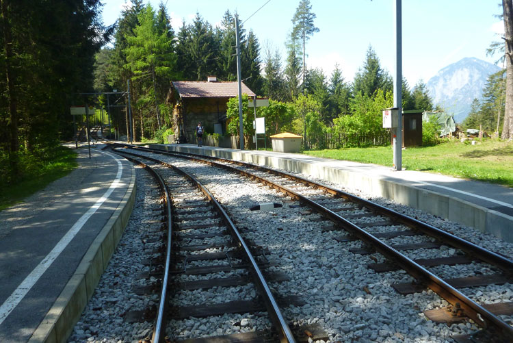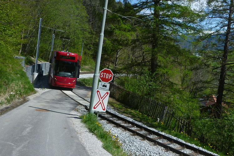 Nach 3 km passieren wir das alte Bahnwärterhaus und die Station „Tantegert“ oder Igler, wie die Linie 6 der Innsbrucker Mittelgebirgsbahn bezeichnet wird. Die 8,3 km lange Strecke beginnt am Fuße des Bergisel und führt bis zum Ortseingang von Igls, von wo aus man einen wunderschönen und uneingeschränkten Panoramablick über das Inntal, die Nordkette bis hin zu den Gletschern der Stubaier Alpen hat.