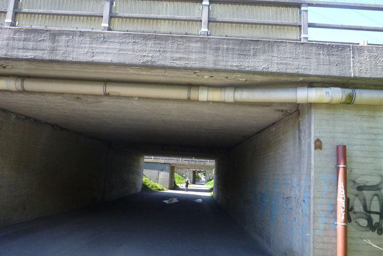Am Bahnhof Kranebitten sind wir fast unten, wir biegen ab zum Ortsdurchlauf. Plötzlich fehlen mir im Ort die Markierungen und ich bin unsicher, ob ich nicht eine Abzweigung verpasst habe. Eine ganze Handvoll Trailer ist dem Esel gefolgt und ist jetzt genauso verunsichert wie ich. Eine Mitstreiterin meint, wir müssen auf alle Fälle weiter abwärts zum Inn. Nach 200 Metern kommen uns von oben wieder Läufer entgegen. Wir sind mit einem kleinen Umweg wieder auf der Strecke und wenig später an VP2 (km 12) am Ende der Runway des Flughafens von Innsbruck.