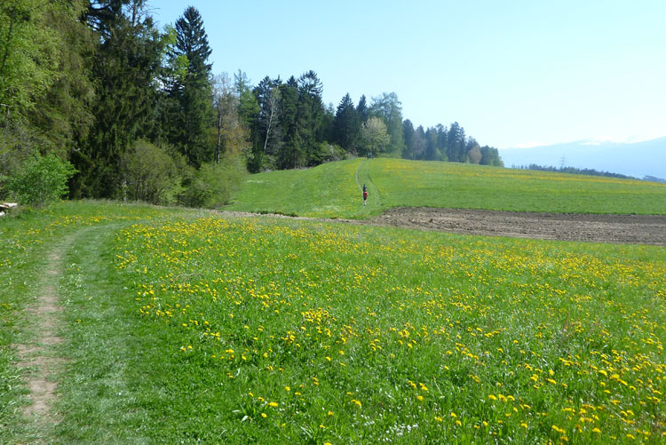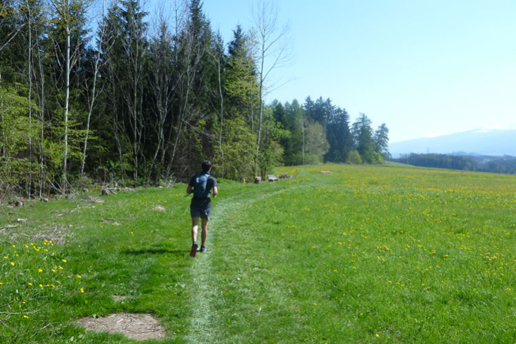 Am Waldrand geht es einige Kilometer in der prallen Sonne über Felder und Wiesen weiter, bis wir kurz vor dem Nattersee wieder in den Wald eintauchen, wo erneut tolle Single-Trails auf uns warten. Beim letzten Anstieg hat sich eine Fankurve aufgebaut und feuert uns kräftig an.