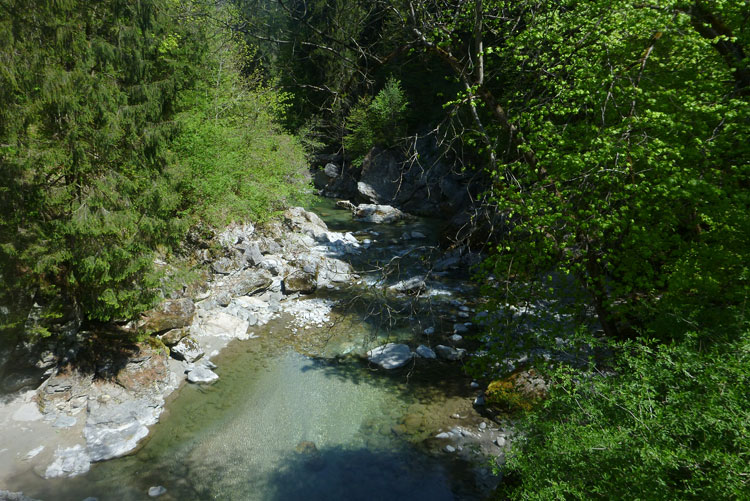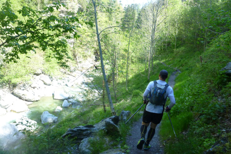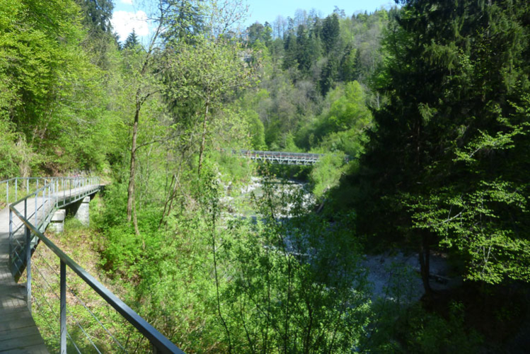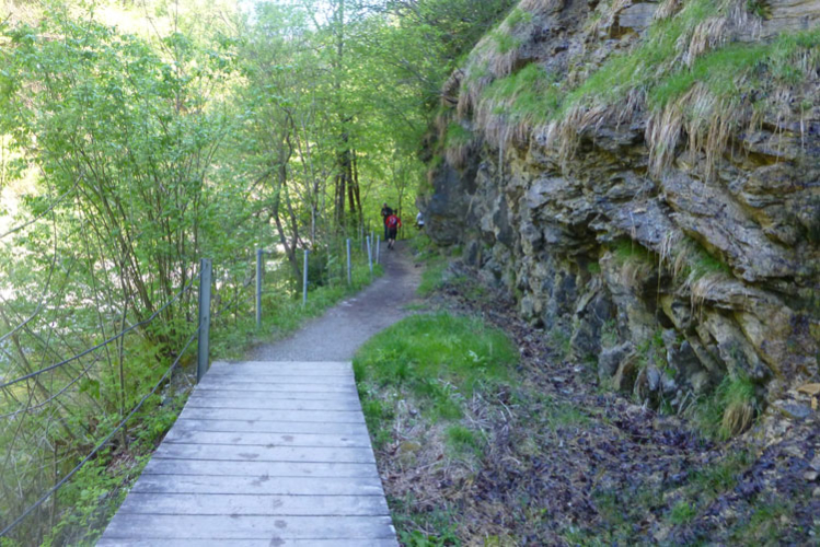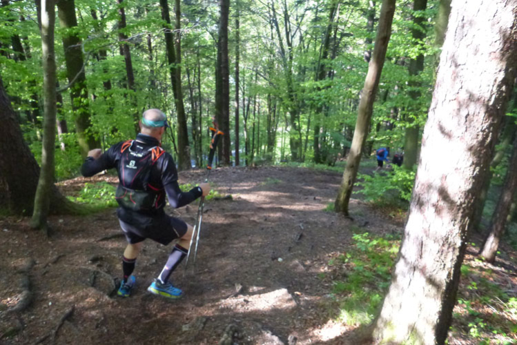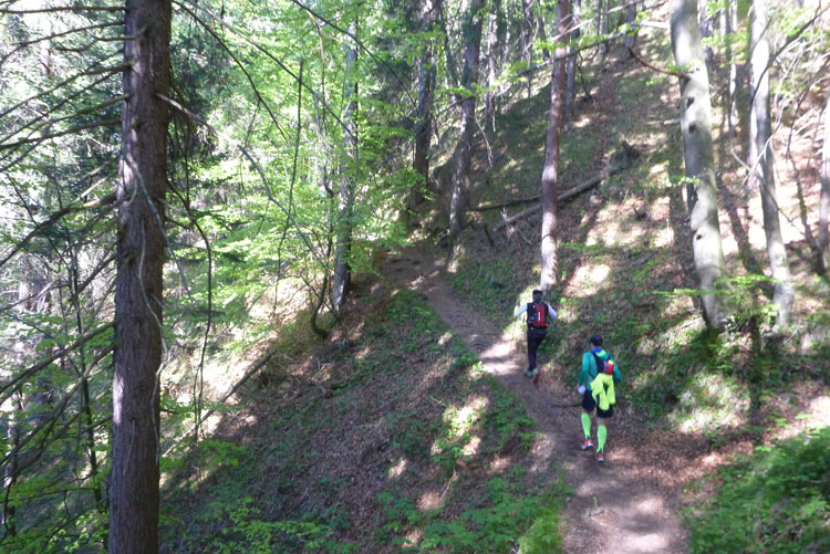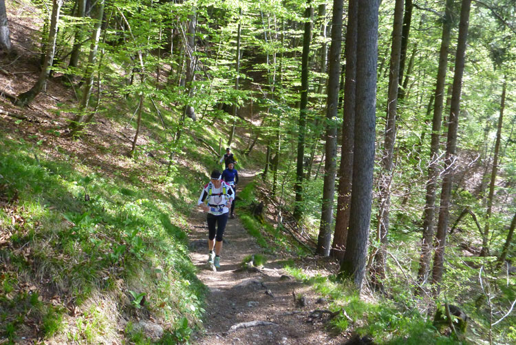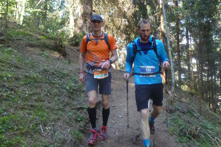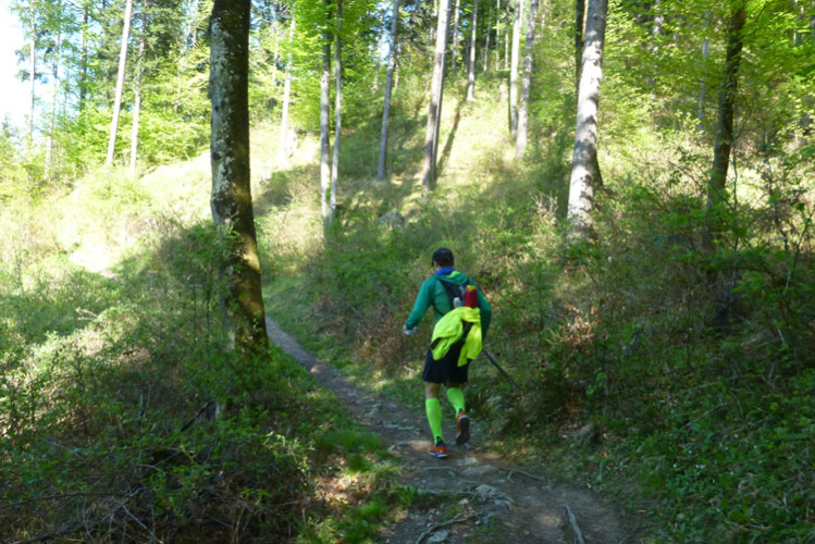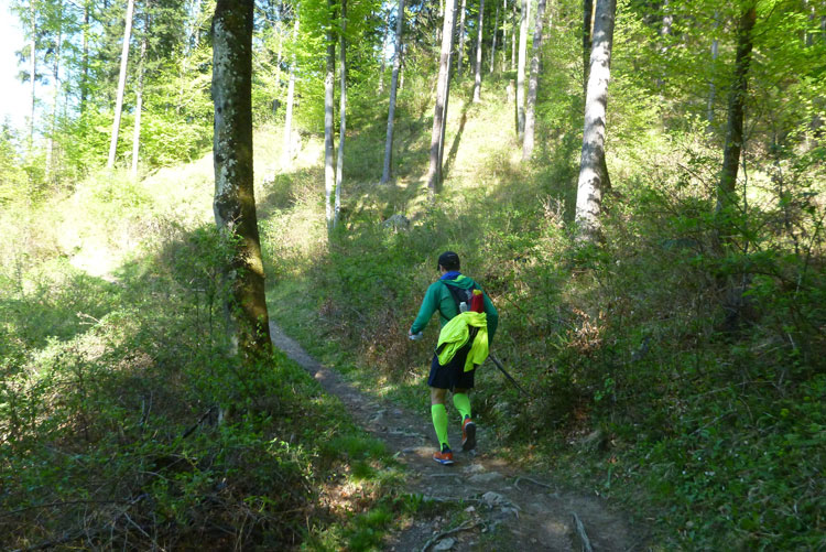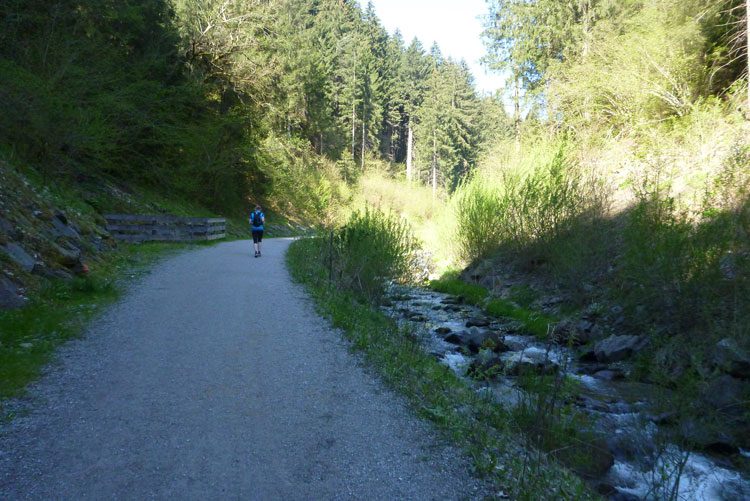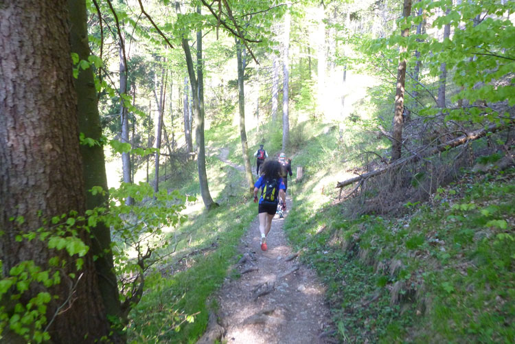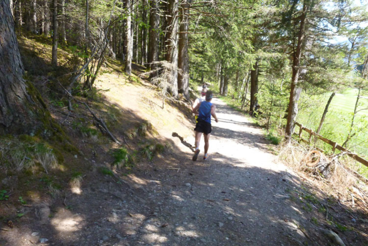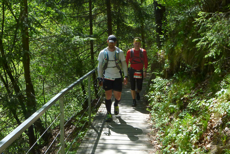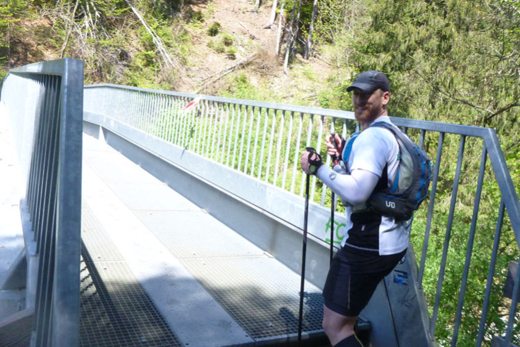 Vollkommen einsam ziehe ich weiter, das Feld der K65-Teilnehmer ist weit auseinandergezogen. Höchste Aufmerksamkeit erfordern die nächsten Kilometer. Viele Trails und schmale Waldwege warten auf uns, aber auch mit den Markierungen habe ich manchmal Probleme. Ich versuche mich gerade anhand des Kartenmaterials, das uns ausgehändigt wurde, zu orientieren, als eine Läuferin auf mich aufläuft und meint: „Wir sind richtig“. Ok, dann weiter, es geht meist abwärts bis in die Sillschlucht.