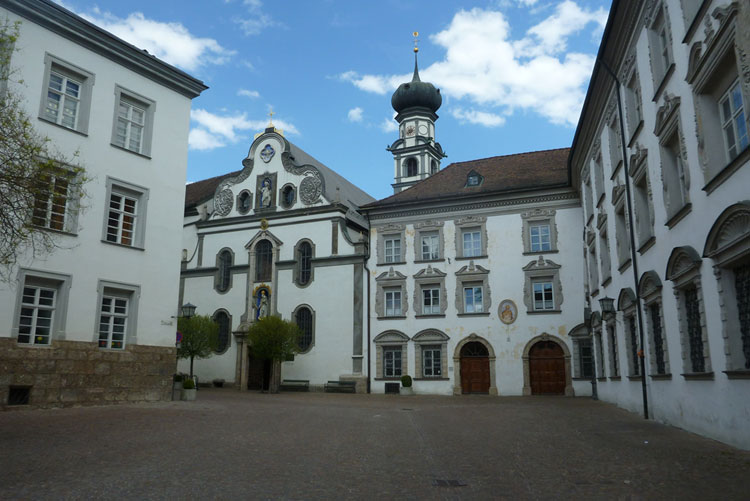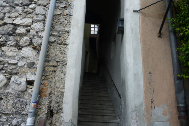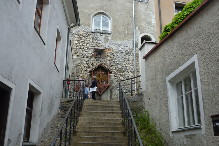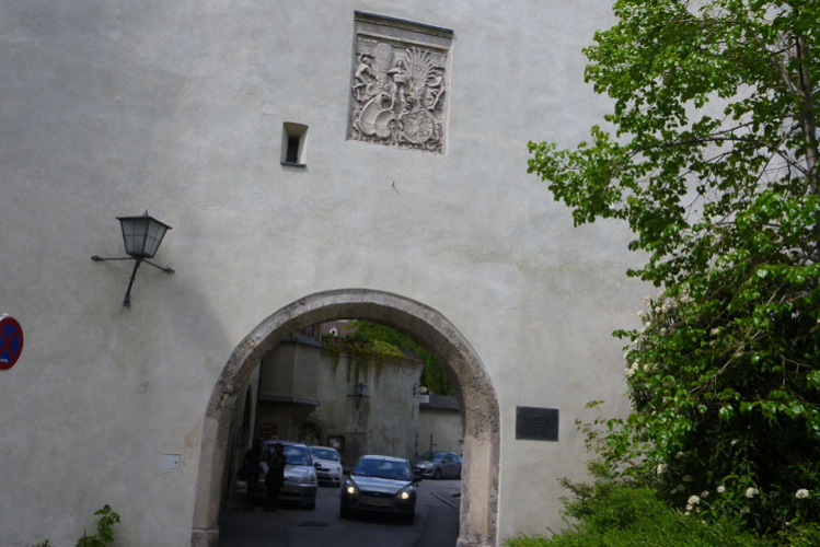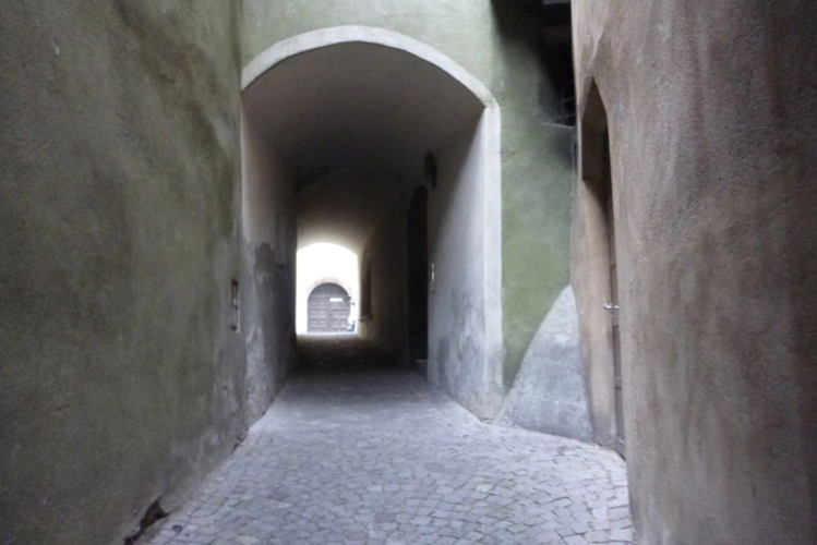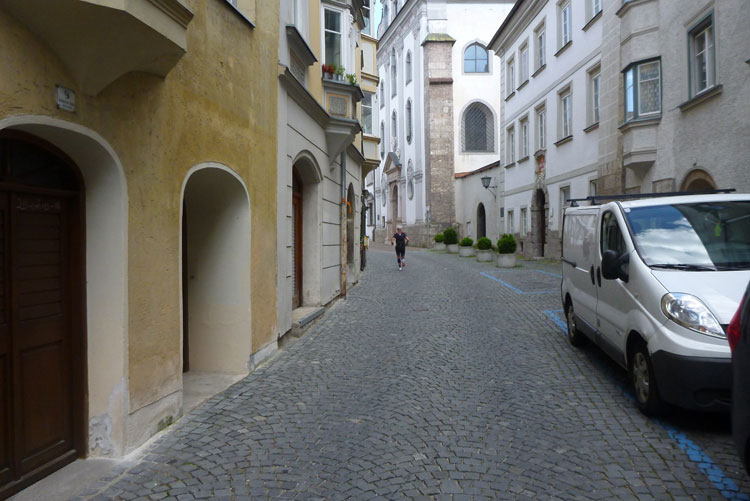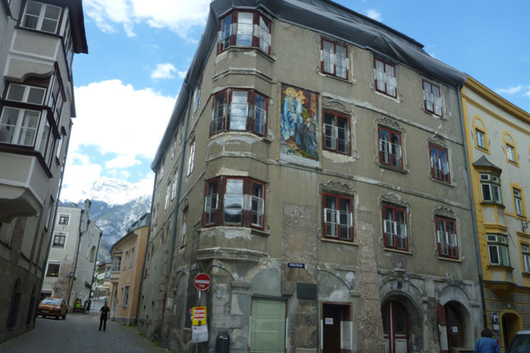 Weiter geht es auf den urbanen Trails der Haller Altstadt, durch Unterführungen, enge Gassen, über Treppenanstiege, Hausdurchquerungen und vorbei an eindrucksvollen Bauten. Das Jesuitenkolleg wurde 1571 von Erzherzogin Magdalena gegründet. Nach seiner jüngsten Restaurierung besitzt es einen der schönsten barocken Innenhöfe Tirols. Schick ist die grauweiße Fassade, sie entspricht dem Originalbefund von 1680. Am Guarinoni Haus kann man ein wundervolles Mosaik bewundern. Ja, auch das macht richtig Spaß.