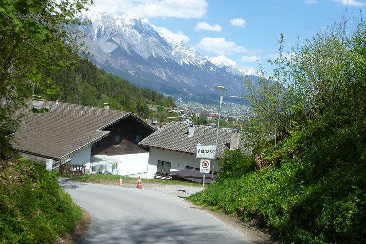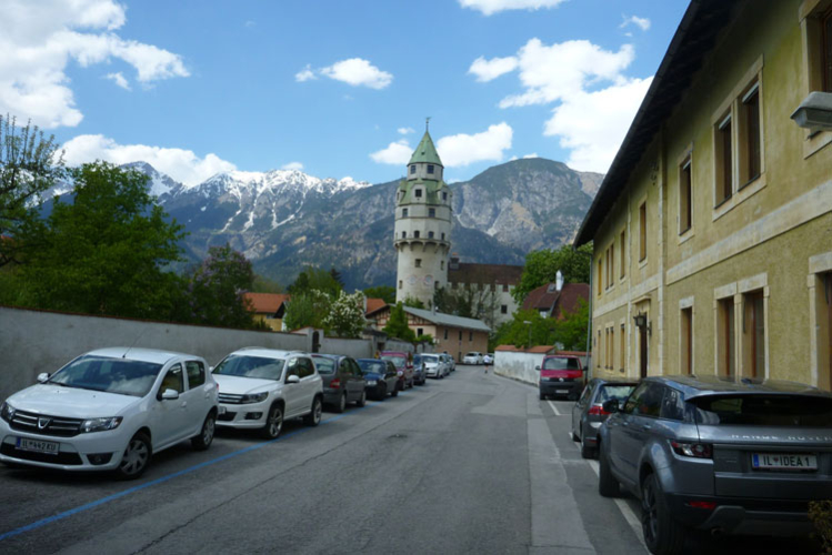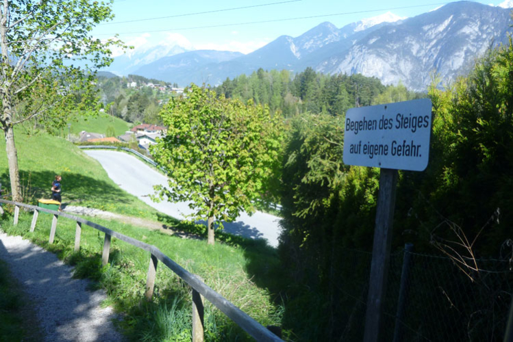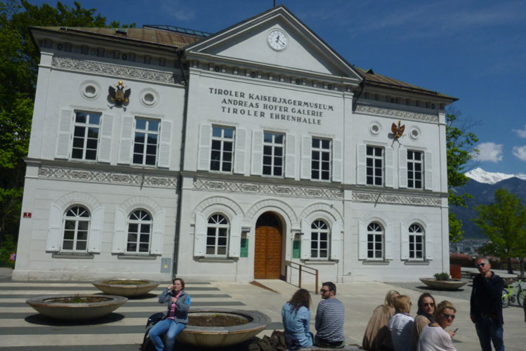 Wegen einer Autobahnbaustelle handeln wir uns einen kleinen Umweg ein. Über hohe Stufen müssen wir aufsteigen, um das Hindernis zu umgehen. Auf dem Bergiselplateau passieren wir das Tiroler Kaiserjägermuseum mit Andreas-Hofer-Galerie und -Denkmal. An der Enthüllung des Monuments nahm seinerzeit Kaiser Franz Joseph I. höchst persönlich teil.