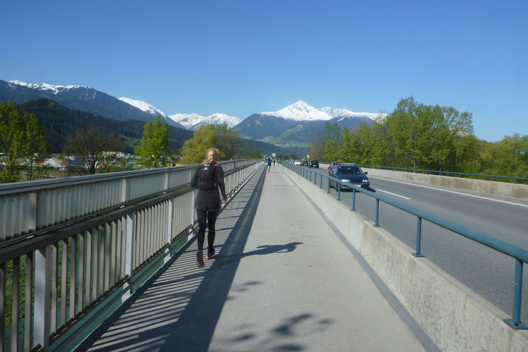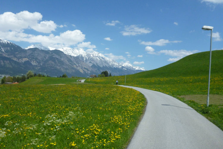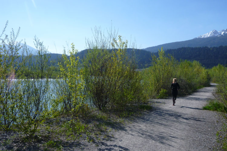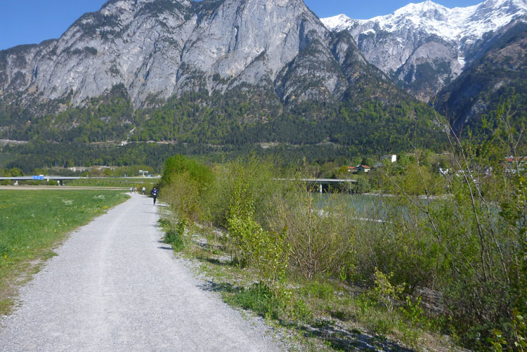 Cut-off ist 10:30 Uhr, da braucht sich niemand Sorgen machen, das ist easy zu schaffen. Weiter geht’s für uns durch‘s Inntal, um auf die gegenüberliegende Seite zu gelangen. Ein Schotterweg führt uns direkt am Inn entlang. Nach unterqueren der Inntalautobahn gelangen wir nach Völs.