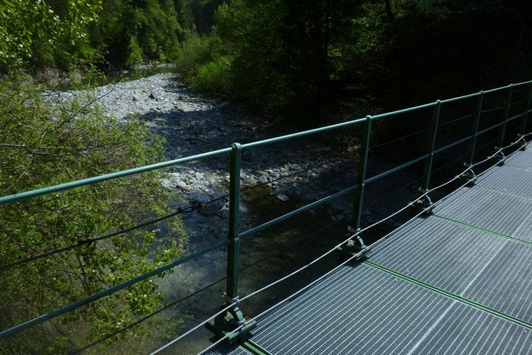 Die Sill entspringt oben in der Nähe des Brenners und fließt unter der Brennerautobahn nach Innsbruck. Der Eingang zur Schlucht ist am Fuße des Bergisel. Über eine Stahlbrücke gelangen wir in die ungezähmte, landschaftliche Romantik des Gebirgsflusses. Hier treffe ich dann endlich auch wieder auf weitere Läufer. Die Teilnehmer des K85 folgen schon länger dem Lauf der Sill von ihrem höchsten Punkt herunter und treffen hier wieder mit uns zusammen. Die Schlucht war Zeuge der blutigen Schlachten des Tiroler Volksaufstands von 1809 mit Freiheitskämpfer Andreas Hofer gegen die bayerisch-französischen Truppen.