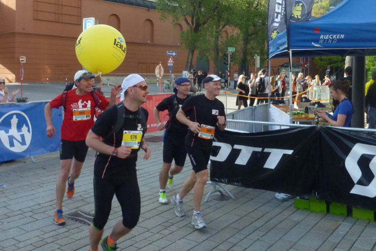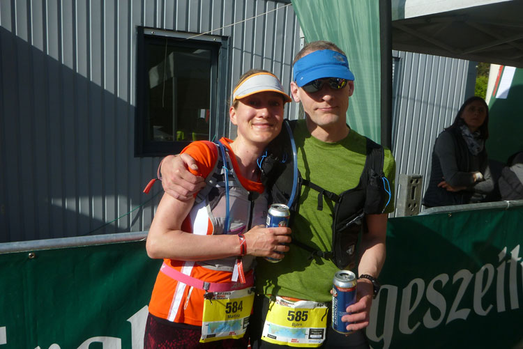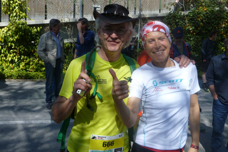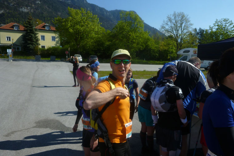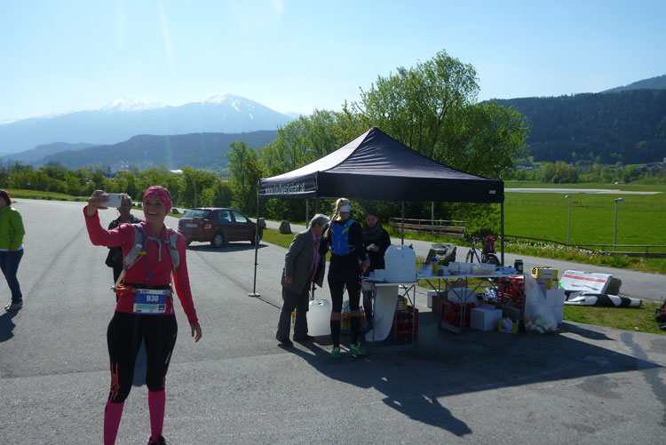 Kaum bin ich am Verpflegungsstand, werde ich schon von Susannerl und Lionheart mit seinem markanten Hut begrüßt. Sie haben noch eine gute Stunde Zeit bis zum Start des K42. Ich verliere bei dem Gewusel vollkommen die Orientierung, laufe nach dem Verpflegen einfach geradeaus weiter. Nach hundert Metern machen mich die fehlenden Markierungen doch stutzig und ich mache kehrt. An der VP werde ich dann aufgeklärt, ich muss wieder in den Einlaufkanal zurück, von wo ich hergekommen bin.