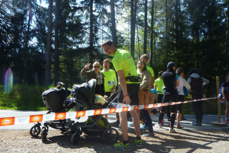 Dann geht’s rein in den Zieleinlaufkanal am Natterersee. Die K25er sind hier fertig und werden anschließend zurück nach Innsbruck transportiert. Im Gegenzug werden die Teilnehmer am Trailmarathon, der um 12:30 Uhr gestartet wird, hierher gebracht. Dementsprechend viel ist los.