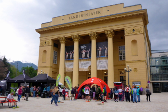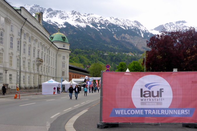 Die Startunterlagen gibt es ab 18 Uhr auf dem Festivalgelände vor dem Landestheater, das an diesem Wochenende einfach Trailcity genannt wird. Die Trailcity ist eine Zeltstadt, wo namhafte Sportartikelhersteller ihre Ausrüstungsartikel anbieten. Sie wird ergänzt durch eine große Bühne, den abgesperrten Start- und Zielbereich mit Marathontor, Startnummernausgabe, Taschendepot und Umkleidezelt. Das Kongresszentrum liegt nach hinten versetzt und ist ebenfalls für die Läufer geöffnet.