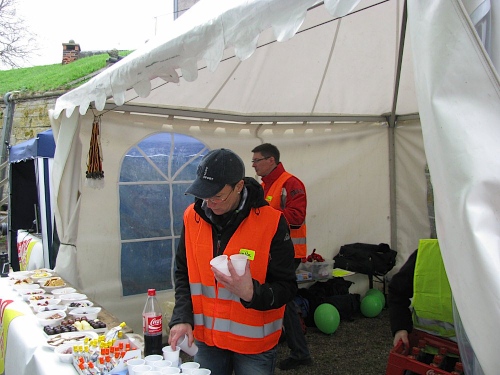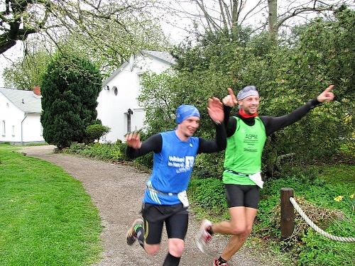 Abschließend hielt Micha noch ein Beißholz in die Höhe. "Für Detlef Fimmel...", rief er in die Runde, "...der Bursche hatte sich erst kürzlich von einem Fieber erholt, wollte dennoch an diesem Lauf teilnehmen, und musste sich dann arg durchquälen. Kaum nachahmenswert. Drum hatte die Rennleitung entschieden: das Ding muss an ihn!" Beide umarmten sich. "So, und nun langt endlich rein...sonst wird noch alles kalt!"