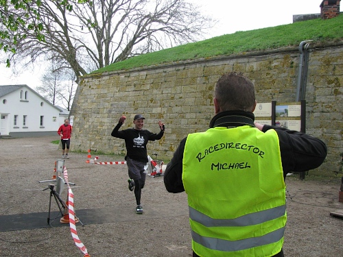 Als wir wieder nach draußen gingen, liefen in regelmäßigen Abständen weitere Marathonsieger ins Ziel und wurden vom Veranstalter stets persönlich in Empfang genommen. Es war unschwer zu erkennen, dass dieses Laufevent sowohl ihm als auch seiner Freundin Susanne Holz sichtlich Spaß machte. Ich wechselte derweil meine Klamotten auf dem Spitzboden des Gästehauses und wollte dann zusammen mit meiner Frau ebenfalls bis zum allerletzten Finisher warten. Aktuell bekam ich mit, wie Anja Beinling ins Ziel gelaufen kam. Sie hatte ihren ersten Marathon absolviert und strahlte überglücklich bis über beide Ohren. Bedingt durch die begrenzte Zahl von Teilnehmern spürte jeder bei dieser Laufveranstaltung unentwegt den familiären Charakter. Daher war es auch kein Wunder, das einige prompt zu Anja hin liefen und sie spontan umarmten.