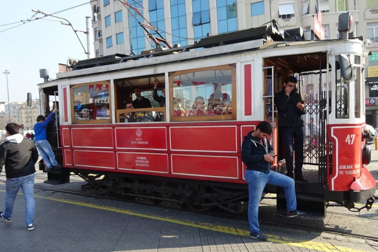 Nun beginnen für mich zwei volle Sightseeing-Tage. Vom Karaköy Port Hotel im Stadtteil Beyoglu spaziere ich den Anstieg hinauf zur belebten Flaniermeile Istiklal Caddesi, wo die historische Tram vom Taksim-Platz zum Tünel fährt (mit der unterirdischen Standseilbahn kommt man rasch hinunter zur Galata-Brücke).