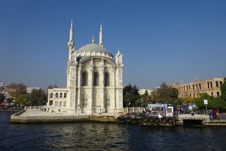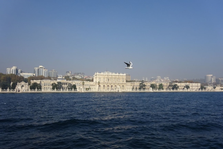 Ich habe mich für eine mehrstündige Rundfahrt durch den Bosporus mit Durchfahrt unter der imposanten Brücke hin zur asiatischen Seite entschieden. Das Schiff legt erst ab, als es bis auf den letzten Platz gefüllt ist – eine Stunde hören wir einer Helfer immer dieselben Worten auf Türkisch und Englisch schreien: „Hurry up, come, come onboard, we take off, goin' under the bridge...“ Als wir durchfahren, wird das Gedränge vorne am Bug, wo die beste Fotosicht besteht, größer und größer. Mit meinen 192 cm habe ich Vorteile im Kampf um eine gute Knipsposition.