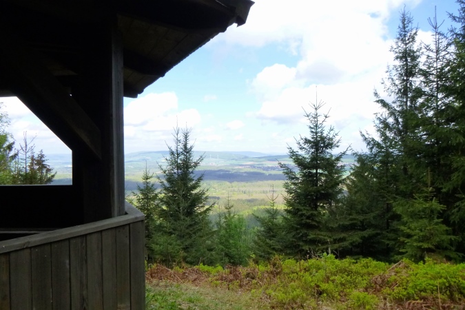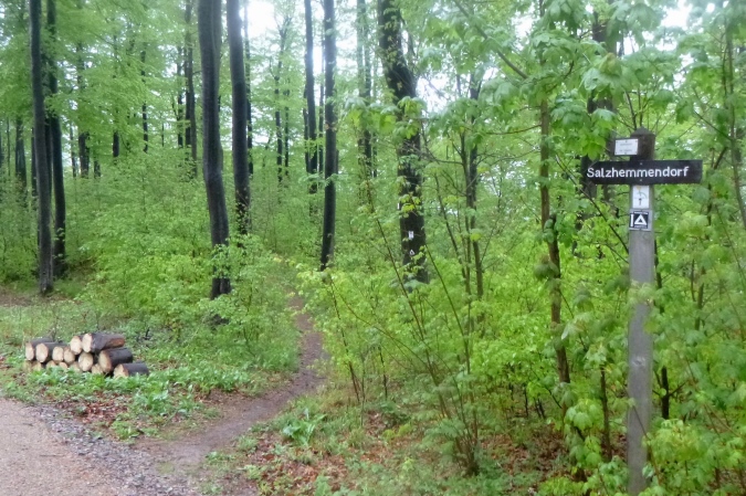 Keine 10 km sind es mehr, aber da wäre noch ein Berg… der Thüster Berg nämlich, 450 m hoch. Ein Klacks. 7 km sanfter Anstieg. Hier stellt sich für manchen die Frage: gehst du schon oder läufst du noch?. Oben steht ein wenig ästhetischer Fernsehturm und einen Kilometer weiter der Lönsturm mit interessanter Geschichte, die sein uriges Aussehen erklärt. Der Turm war 1928 ursprünglich 10 m höher geplant, aus Geldmangel aber etwas abgespeckt ausgeführt. Als die Buchen um ihn herum irgendwann die Sicht versperrten, wurde er 1972 zur 950-Jahr-Feier von Salzhemmendorf und 1997 ein weiteres Mal erhöht.