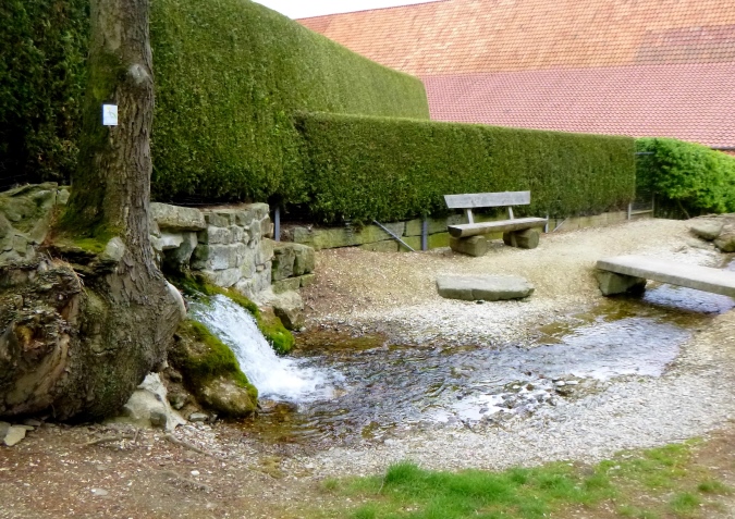 Grünenplan, Sitz der Glaswerke Schott mitten im Ort in einem Bau mit prächtiger, alter Ziegelfassade. Man kann Fabriken auch ansehnlich bauen, das haben unsere Ahnen drauf gehabt. Dagegen fällt die Funktional-Architektur am Werk 2 nur ein paar Schritte weiter schon beträchtlich ab. Und schon sind wir wieder im Wald und laufen an einem Bach entlang zum nächsten Getränkepunkt. Hier wurde sogar ein Feuersalamander gesichtet! Ein gutes Zeichen für intakte Natur!