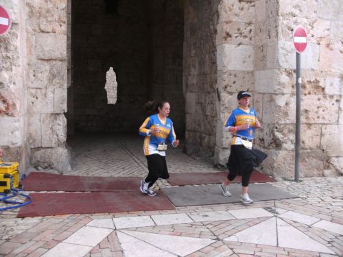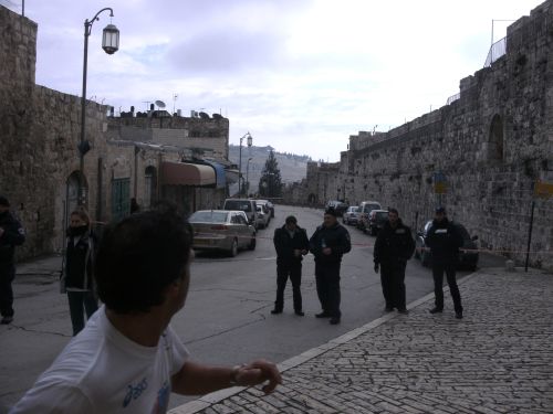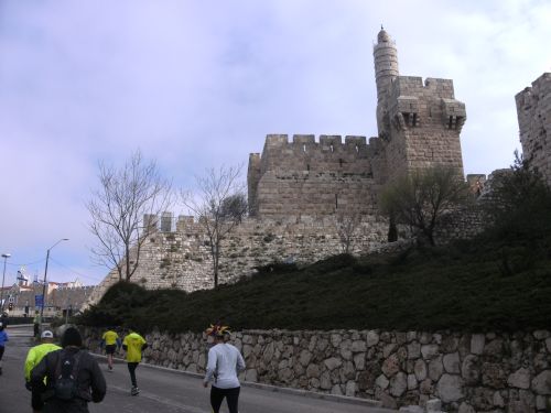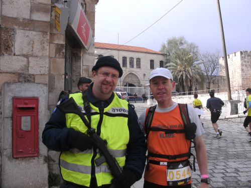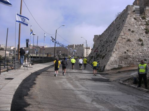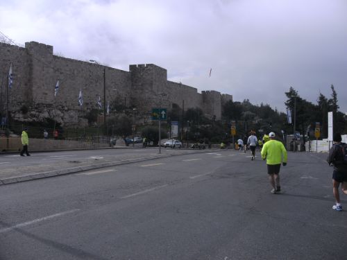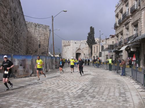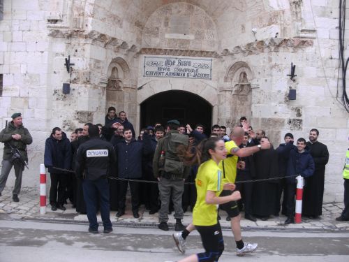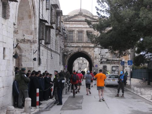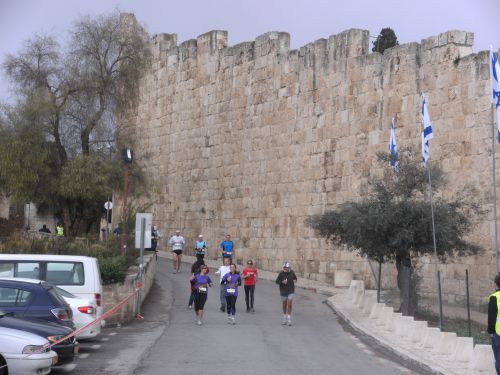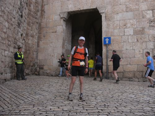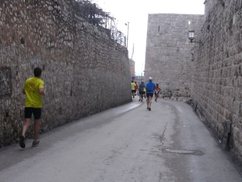 Freundlich werden wir in der Altstadt empfangen. Es geht nach der Zitadelle gleich rechts ab ins armenische Viertel. Leider ist der Streckenteil durch die Altstadt nur kurz. Schon bald geht es durch das Zion Tor wieder hinaus. Die anderen drei Viertel der Christen, Juden und Moslems berühren wir nicht. Wir hätten aber ohnehin nur durch wenige Gassen laufen können. Zu verwinkelt ist das Gassengewirr der Altstadt. Läuferfreundliches Terrain sieht anders aus.