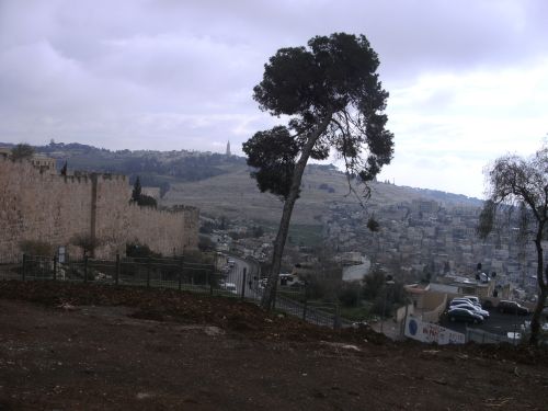 Heraus aus der Altstadt bietet sich vor uns ein schöner Blick hinüber zum Ölberg mit dem großen Friedhof, Kirche der Nationen, Maria Magdalena Grab, Garten Gethsemane, wo Judas den Herrn verraten haben soll, u.v.a.m.