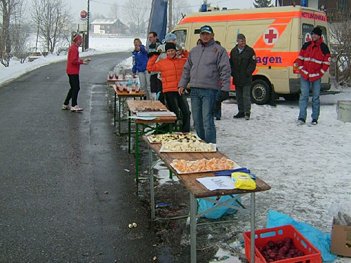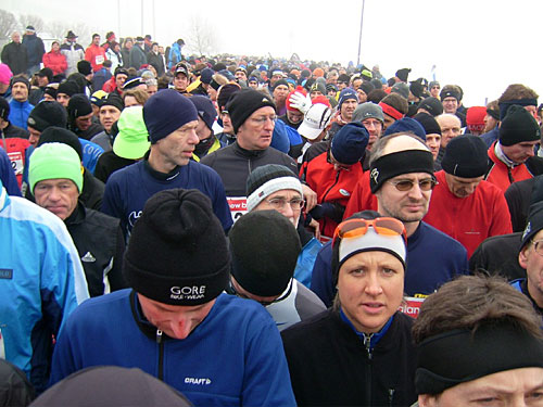 Beim Gehen werfe ich noch mal einen Blick auf die ausgehängten Ergebnisse: Bei den Männern gewinnt Stephan Gebauer (Post SV Rosenheim; 2.38.44 Stunden) deutlich vor Roland Schultz (TriRun Linz; 2.49.54) und Harald Helleport (Österr. Gebirgsverein; 2.50.26. Bei der Frauen dominiert Sabine Huber (LG Mettenheim; 3.12.28) vor Martina Riegler (LG Passau; 3.18.24) und Carmen Hildebrandt (3.20.04). Leider hat die Kälte den einen oder anderen abgehalten, denn im Vergleich zum Vorjahr fehlen rund 200 Sportler. Aber über 1500 Läufer haben sich der Herausforderung gestellt. „Es ist halt Winter,“ so die eine Aussage vom Veranstalter.