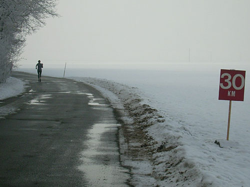Der zweite Marathon beginnt dann ab 16.00 Uhr, wo ich mich ins Auto setze und mich auf den Heimweg übers Rottal und über Landshut aufmache. Während 2005 einsetzender Schneefall und die sommerschuhfahrende Autofahrerzunft die Fahrt nicht gerade zum Vergnügen machten, geht es heuer sehr gut. Die betreffenden Bundesstrassen 388, 299 und 16 sind gut ausgebaut und es sind auch fast keine Ortsdurchfahrten vorhanden. Meine Fahrzeit ist, auch wegen der kürzeren Strecke, nicht unwesentlich länger als über die Autobahn 3.