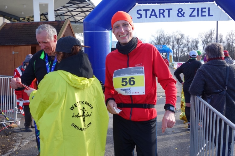 Im wunderschönen Waldstück am Inn überhole ich den Marathon-Debütanten Peter, der einen geknickten Eindruck macht. Ich rufe ihm zu, dass er auf den die letzten zweieinhalb Kilometern seine mentalen Reserven mobilisieren muss. Ich beiße mich durch, der Puffer wird reichen. Was bin ich glücklich! 3:57:57 ist ein Super-Ergebnis für mich.