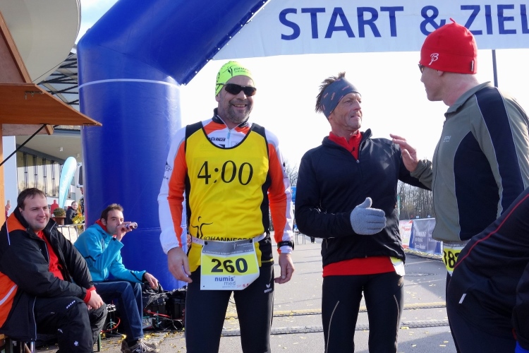 Heiko zieht vorbei: „Unter drei Stunden wird das wohl nichts“ , kommentiert er meine Aussage vom Beginn des Wettkampfs. „War nur ein Scherz“, rufe ich ihm hinterher. Theoretisch könnten jetzt auch sehr schnelle Unter-drei -Stunden-Läufer ihre letzten Kilometer herunterspulen. Mir fallen keine auf, denn ich bin damit beschäftigt, mir den Toilettencontainer am Startbereich herbeizusehnen. Für den "Boxenstopp" benötigte ich zwar weniger als zwei Minuten, doch die letzten 10 km in 61 Minuten sind eine Herausforderung.