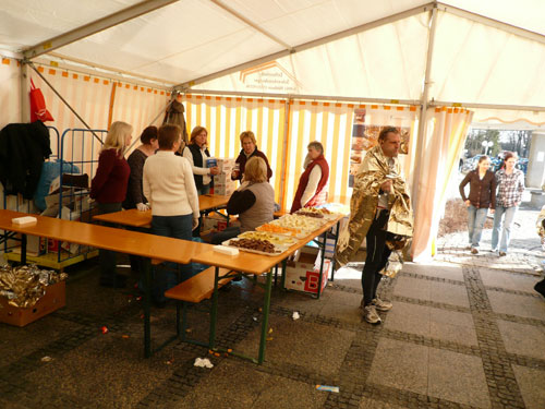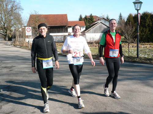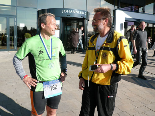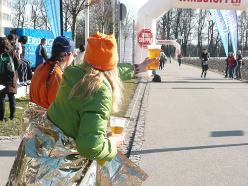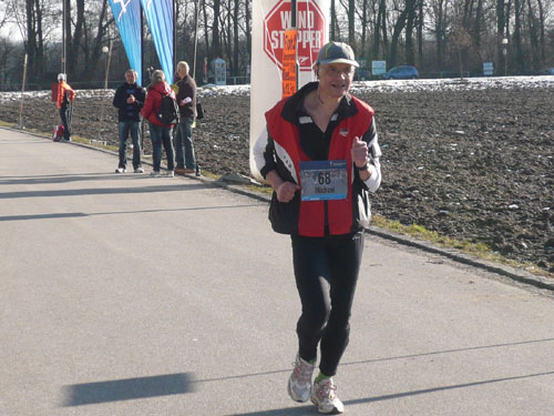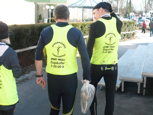 Dann geht’s für mich auf zur zweiten Runde, Motivationsprobleme gibt’s bei dem Wetter natürlich nicht. Obwohl meine 2 Stunden nach der Hälfte überall ein Mittelplatz wären, bin ich beim Thermen-Marathon jetzt fast alleine auf weiter Flur unterwegs und befinde mich im Klassement im hinteren Fünftel. Liegt vielleicht daran, dass hier eine Sollzeit von 5 Stunden vorgegeben ist und langsamere Läufer erst gar nicht antreten, oder auch daran, dass die Partyläufer um diese Jahreszeit noch Winterschlaf halten.