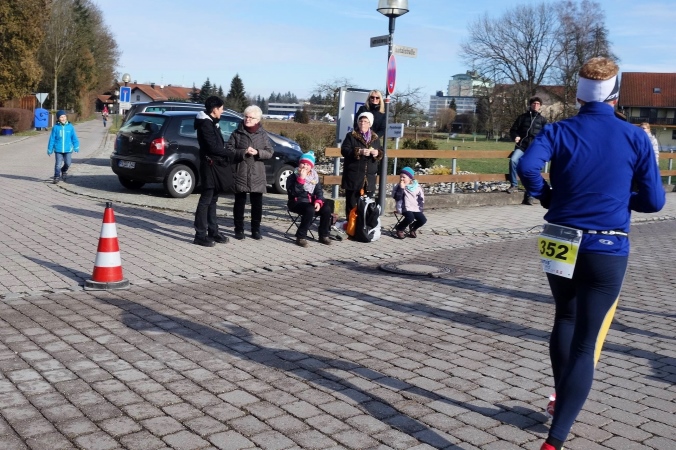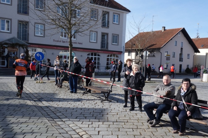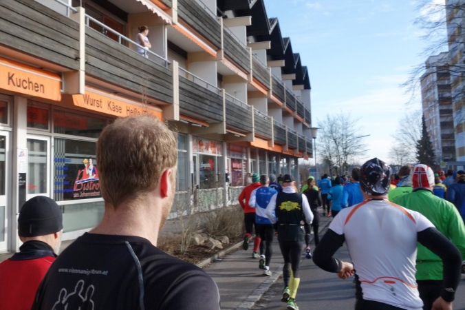 Kalt kann es in Bad Füssing schon werden. M4Y-Kollege Herbert Orlinger berichtete von einem Marathon, bei dem der Inhalt seiner Getränkeflasche gefror. Aber geregnet hat es noch nie, wie mir OK-Chef Thomas Richter erzählt. Heute gibt es zur Abwechslung mal einen ordentlichen Föhn, den man besonders auf der zweiten Runde bei den Passagen Richtung Alpen spürt.
