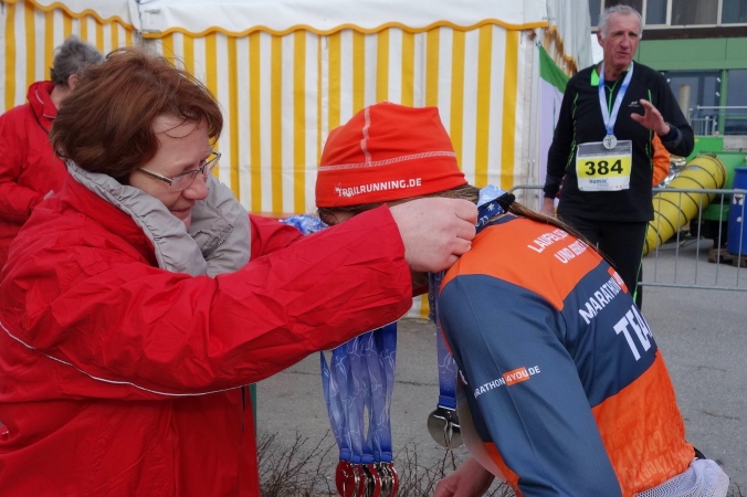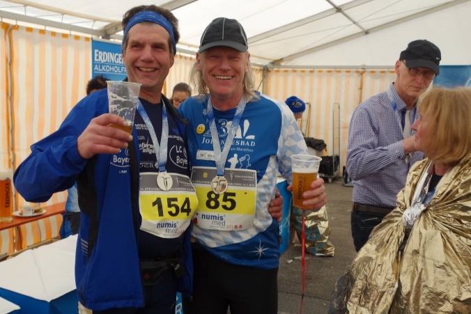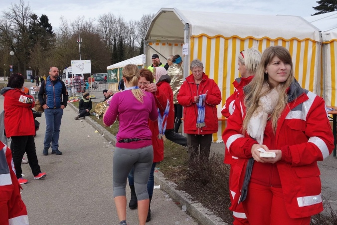 Im Ziel erwarten uns eine schöne Medaille, ein Valentinstags-Schokolädchen und ein fantastisches Kuchenbuffet in beheizten Zelten. Und natürlich Erdinger Weißbier sowie Adelholzener Getränke aus der Münchner Gegend.