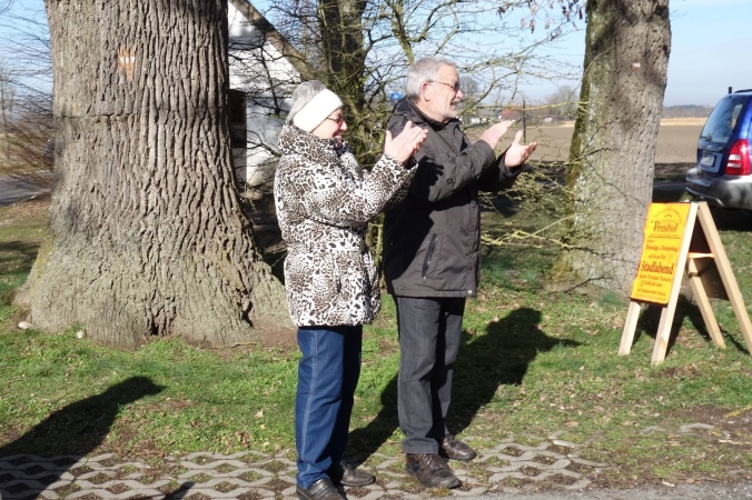 Geflügel zur Rechten, bevor wir zum nächsten Highlight kommen. Die Familie an der Pichlstraße hatte letztes Jahr noch einen kleinen Ghettoblaster. Heute gibt’s fetzige Musik aus großen Lautsprechern. Die nächsten 1,5 km laden zum Träumen ein. Wie mag es hier wohl im Sommer aussehen, wenn die netten Bäumchen am Wegesrand Blätter tragen?
