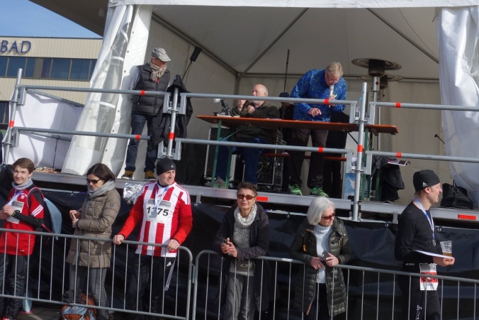 Erster Durchlauf des Start- und Zielraums. Neben uns beenden noch „Zehner“ ihren Wettkampf. Verpflegungsstelle und beheizte Toilettencontainer stehen zur Verfügung.