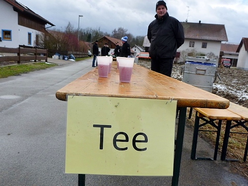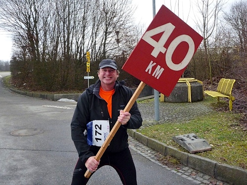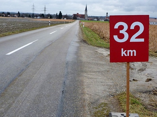 Eigentlich wartet jeder Verpflegungsposten auf den Pumuckl, der wegen der globalen Erwärmung auch mal in Bad Füssing barfuß laufen kann. Aber ich halte mich einige Kilometer vor Dietmar, damit wir uns verpflegungstechnisch nicht auf die blanken Füße treten.