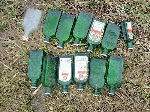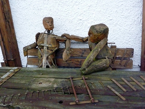 Nebenbei schieße ich noch ein paar Fotos, und Walter erklärt mir, dass das Arrangement aus Jägermeister-Fläschchen schon gestern hier lag. Ich muss nachdenken - demnach ist der schnellste Briefträger Deutschlands schon gestern die Runde gelaufen, während ich mich unter die Patienten gemischt hatte.