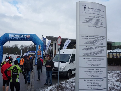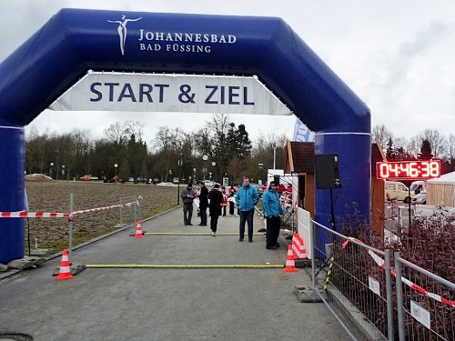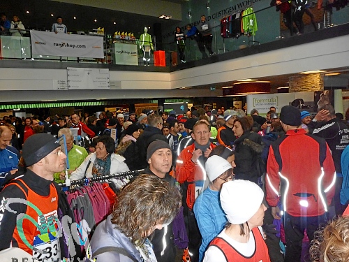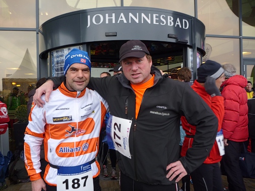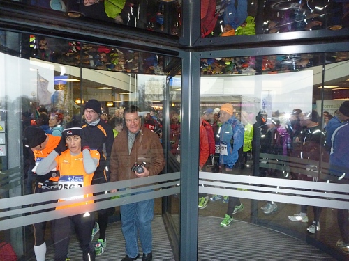 Glücklicherweise kann man sich in der Johannesbad-Therme lauffertig machen, sofern man einen Euro für den Kleiderspint und eine kleine Tasche hat. Aber auch das Kleiderbeutel-Abgabezelt ist beheizt, meine Riesentasche wird auch dort bewacht.