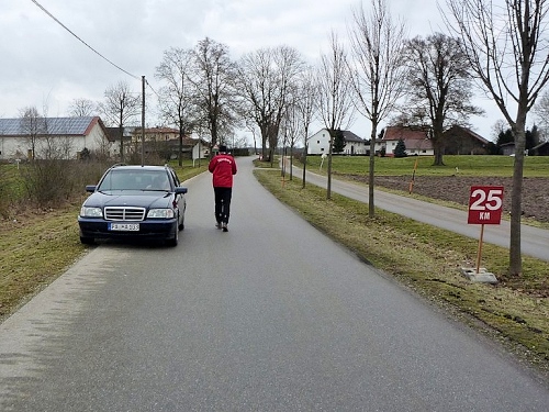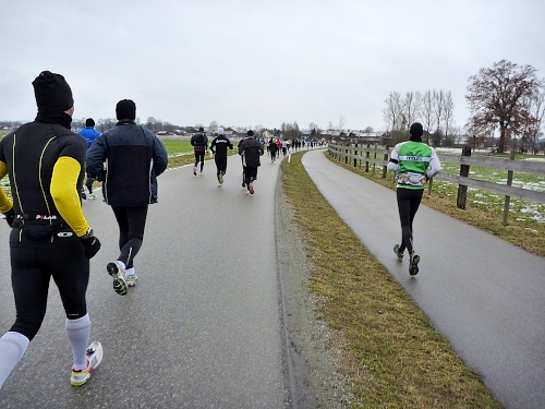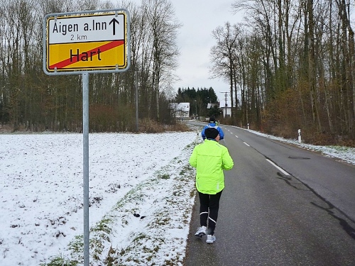 Ganz angenehm ist es jetzt, dass keine Autos unsere flache Laufstrecke benutzen. Entweder die haben hier keine Autos, oder die sind alle beim Bums´n in Schärding.