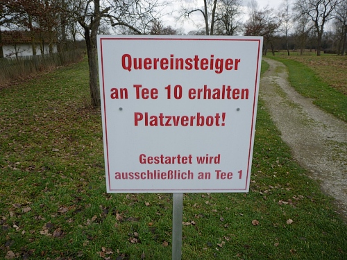 Dann wieder das Schild am Golfplatz mit der Erklärung, bei welchem Tee man anfangen muss. Aber mit Tees habe ich keine Probleme, ich würde niemals beim ersten Tee anfangen, der Sahnelikör am nächsten VP bedingt keinen Platzverweis und gute Musik gibt’s dazu.