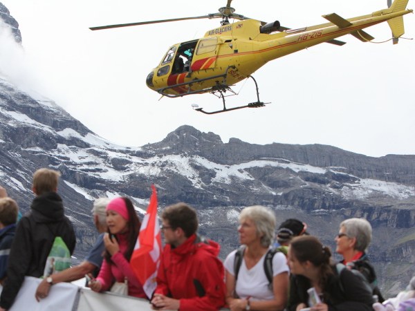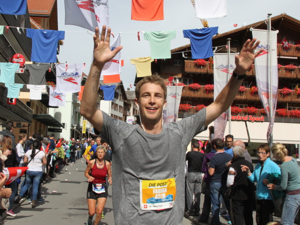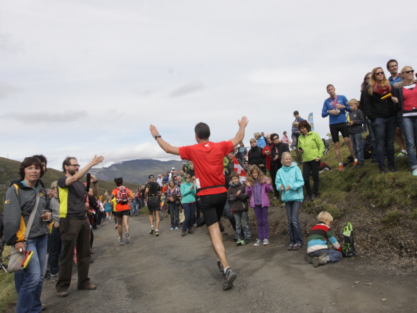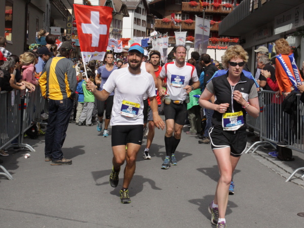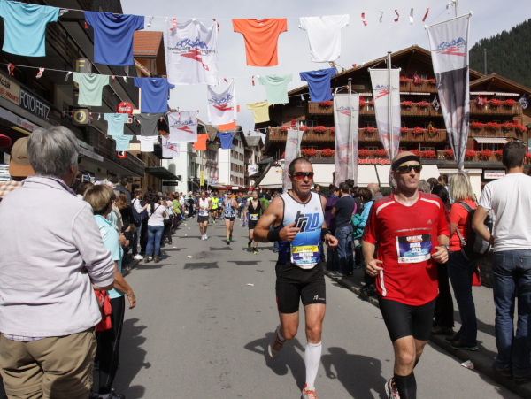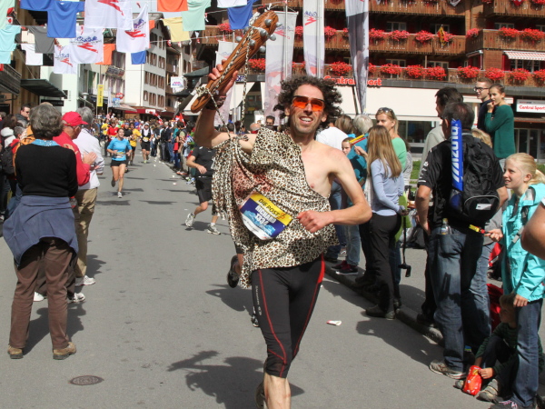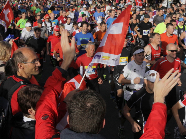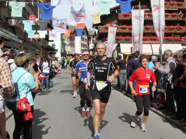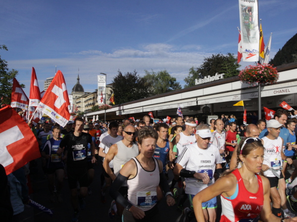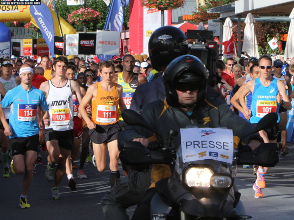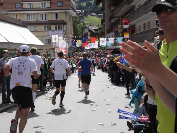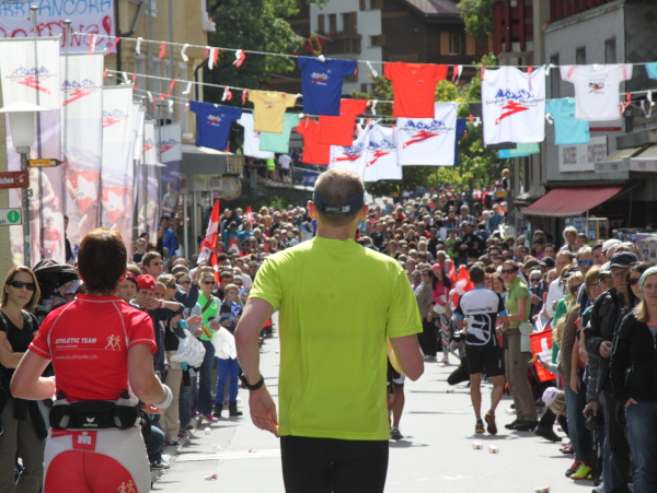 Die Schweizer Nationalhymne wird gespielt. Es wird ruhig, bis die Akkorde verklungen sind und ein Jubelorkan losbricht, in dem der Startschuss fast nicht zu hören ist. Während sich die Aktiven, je nach Aufgabenstellung und Zielsetzung, in die Arbeit oder ins Vergnügen stürzen, verharren die Zuschauer auch dann auf ihren Plätzen, als sich der letzte Läufer hat ausgiebig feiern lassen. Denn wenig später passiert das Feld nach 3 gelaufenen Kilometern erneute das Startgelände und alle wollen sehen, dass es „Vik“ den Bergspezialisten zeigen wird.