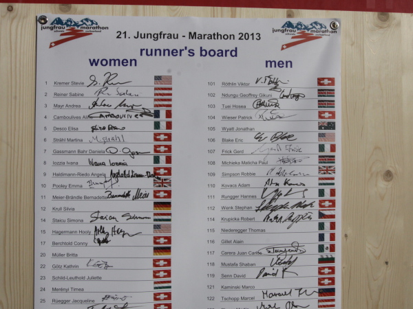 Andrea Mayr kann einem da direkt leidtun. Die Österreichische Superläuferin, Serien-Weltmeisterin im Berglauf, zig-fache Landesmeisterin und Inhaberin zahlreicher Landesrekorde, nimmt ebenfalls zum ersten Mal am Jungfrau Marathon teil und steht unverdientermaßen, aber wie mir scheint nicht ungern, etwas im Schatten des Schweizer Hero. Vorjahressiegerin und damit Weltmeisterin auf der Langdistanz, Steve Kremer aus den USA und die „Vize“, Sabine Reiner, sind auch am Start.