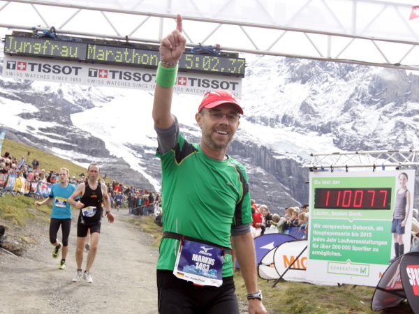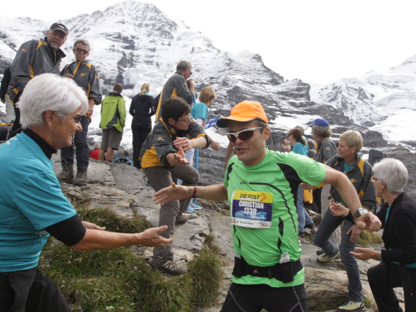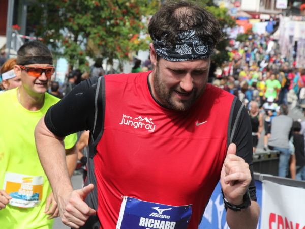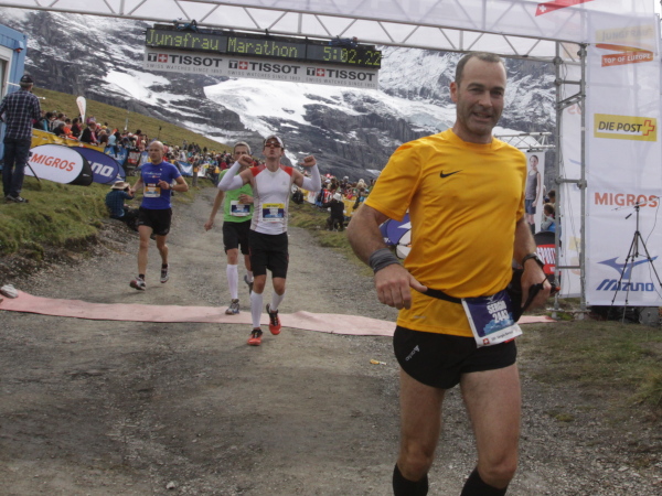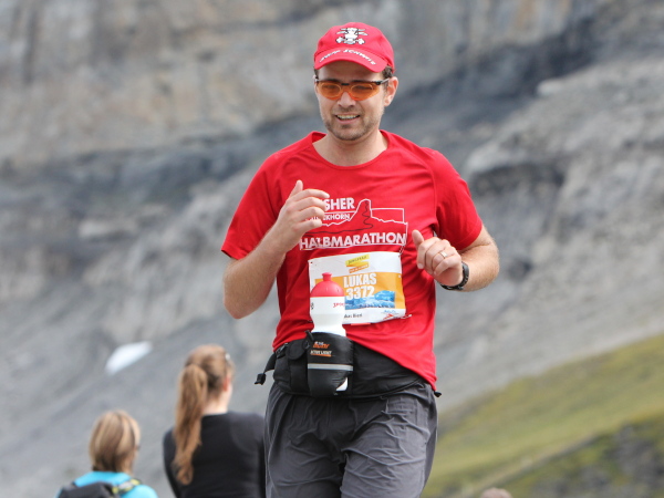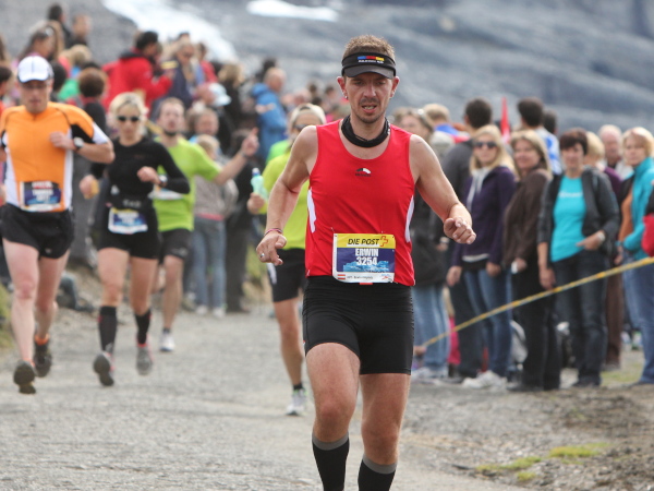 Reden wir nicht drum rum. Er peilte mit der Zeit von 2:55 ganz klar den Sieg an. Tatsächlich erreichte er sogar 2:53:21 und hätte damit auch bis auf 2003, als, wie schon gesagt, Jonathan Wyatt den noch heute gültigen Streckenrekord (2:49:02) aufstellte, jeden Jungfrau Marathon gewonnen. Nur heute nicht. Heute waren zwei Läufer, Geoffrey Ndungu aus Kenia und Mamo Petro aus Eritrea, schneller.