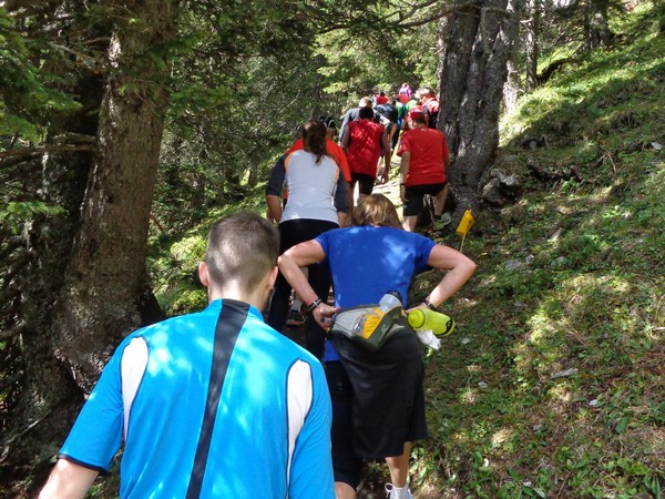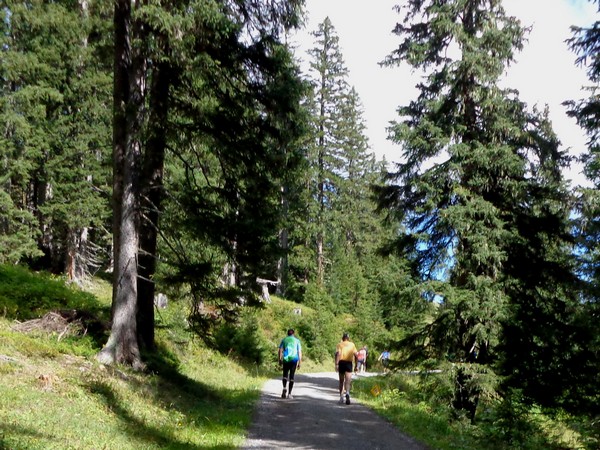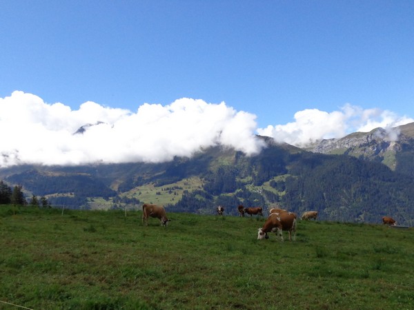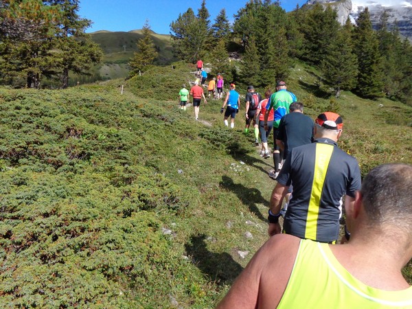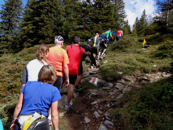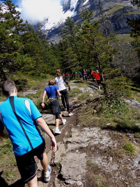 Laufen tut da keiner mehr, nun wird zügig berggewandert. Meist im Schatten, in vielen Serpentinen geht es bergwärts. Schon bald hat man einen prächtigen Ausblick auf das Lauterbrunnental. Ist noch nicht lange her, da waren wir da unten. Ständig ändert sich der Blickwinkel, ständig neue Eindrücke, und einer ist schöner als der andere.