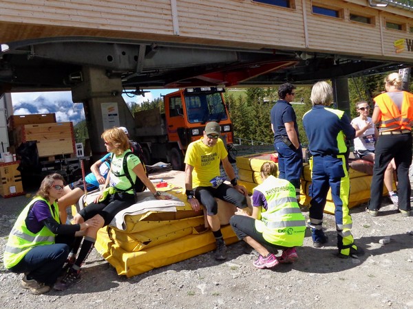 Da und dort setzen sich welche aufs Gemäuer, sei es um die Landschaft wirken zu lassen oder weil sie eine Pause brauchen. Die Physiostation ist gut frequentiert, eifrig wird massiert.