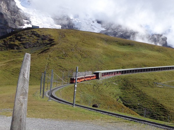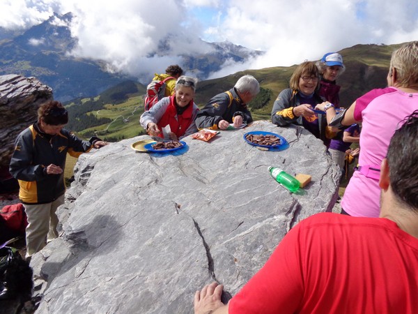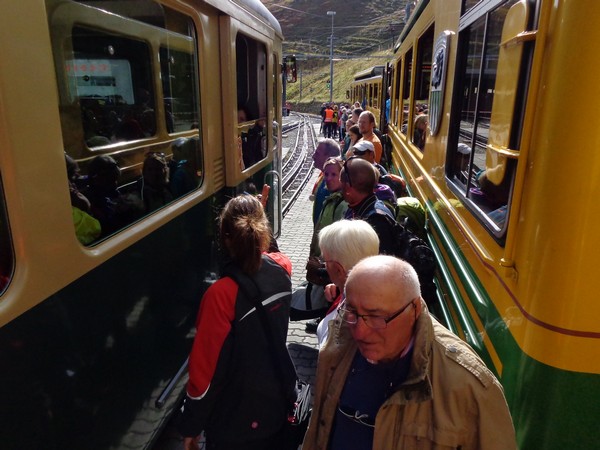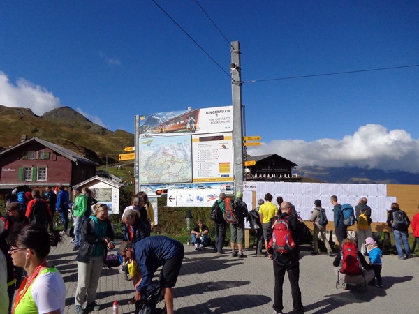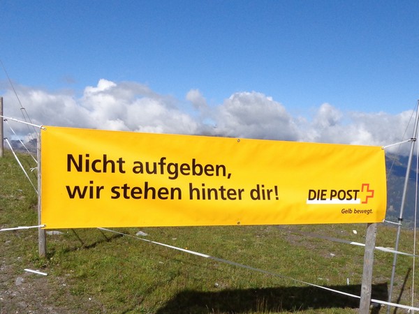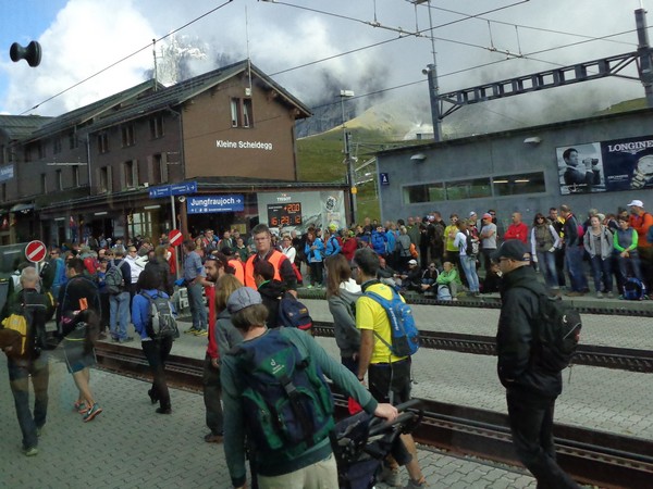 Ich bleibe die nächste Nacht noch in Interlaken, muss also da unten keinen Zug mehr erreichen und muss heute auch nicht mehr stundenlang Auto fahren. Ich habe alle Zeit der Welt. In einem deutsch-französischem Kauderwelsch tausche ich mich mit einem Franzosen aus, das nette Gespräch mit den beiden kleinen Engländerinnen geht da schon fließender.