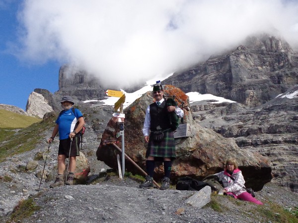 Der Dudelsackspieler hat einen grandiosen Ausblick. Bei ihm geht es links weg, kurz steil bergab, dann den Hang entlang. Der Dudelsack ertönt: „Amazing grace“, ein uraltes Kirchenlied, für mich ur-schottisch, und die dritte Strophe passt so gut: